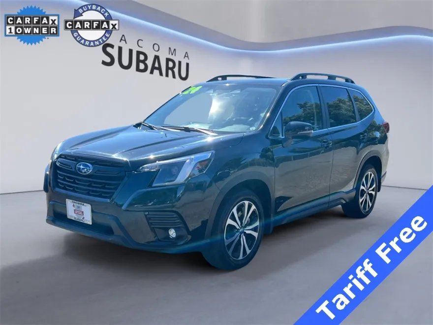 Located at Tacoma Subaru. 2024 Subaru Forester Limited CPO Subaru Certified, includes warranty. Priced below KBB Fair Purchase Price! Clean CARFAX. CARFAX One-Owner. Odometer is 3168 miles below market average! 26/33 City/Highway MPG Certified. Subaru Certified Pre-Owned Details: Warranty Deductible: $0, Powertrain Limited Warranty: 84 Month/100,000 Mile (whichever comes first) from original in-service date, Vehicle History, Transferable Warranty, 152 Point Inspection, SiriusXM 3-Month trial subscription, $500 Owner Loyalty coupon & 1 year trial subscription to STARLINK, Roadside Assistance. Thank you for shopping at Tacoma Subaru! For car buyers who are looking for a honest and transparent experience, look no further. The Bruce Titus Automotive Group is a family-owned and operated business that puts customers first. Our goal is to provide a comfortable, hassle-free experience for our customers and to form relationships that last a lifetime. Our commitment to you does not end when you purchase your vehicle. Our transparent service and ownership experience help keep you and your vehicle safe on the road for years to come.