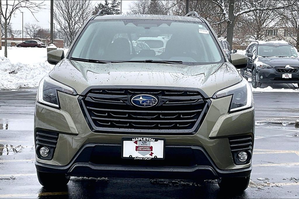Recent Arrival! Forester Premium, 4D Sport Utility, 2.5L 4-Cylinder DOHC 16V, Lineartronic CVT, AWD, Autumn Green Metallic, Black w/Premium Cloth Upholstery, Auto-Dimming Exterior Mirror w/Approach Light, Auto-Dimming Mirror w/Compass & HomeLink, Automatic temperature control, Electronic Stability Control, Emergency communication system: STARLINK Safety and Security (Subscription Required), Exterior Parking Camera Rear, Front fog lights, Fully automatic headlights, Heated door mirrors, Heated Front Bucket Seats, Power driver seat, Power moonroof: Panoramic, Premium Cloth Upholstery, Radio: Subaru STARLINK 6.5" Multimedia Plus System. Subaru Certified Pre-Owned Details