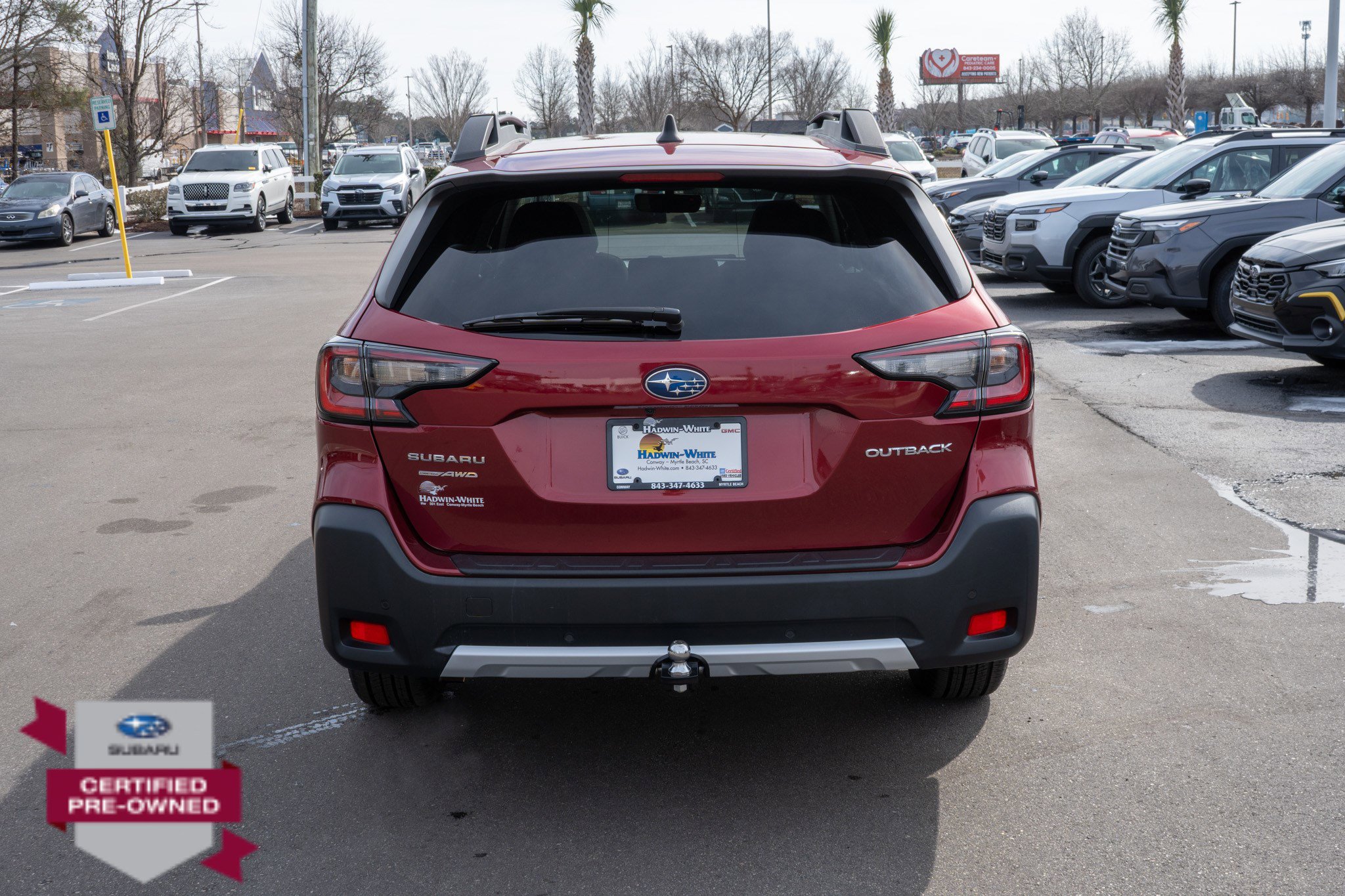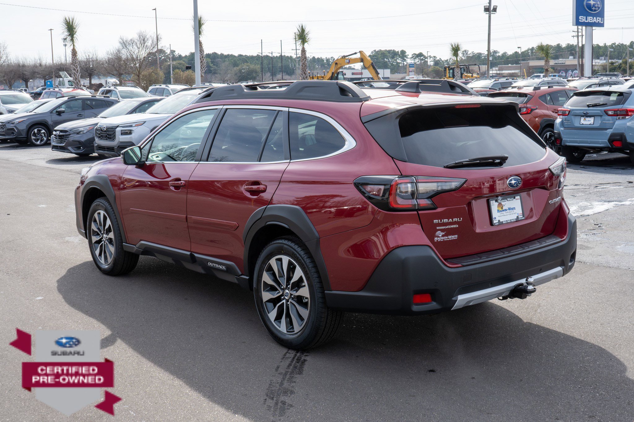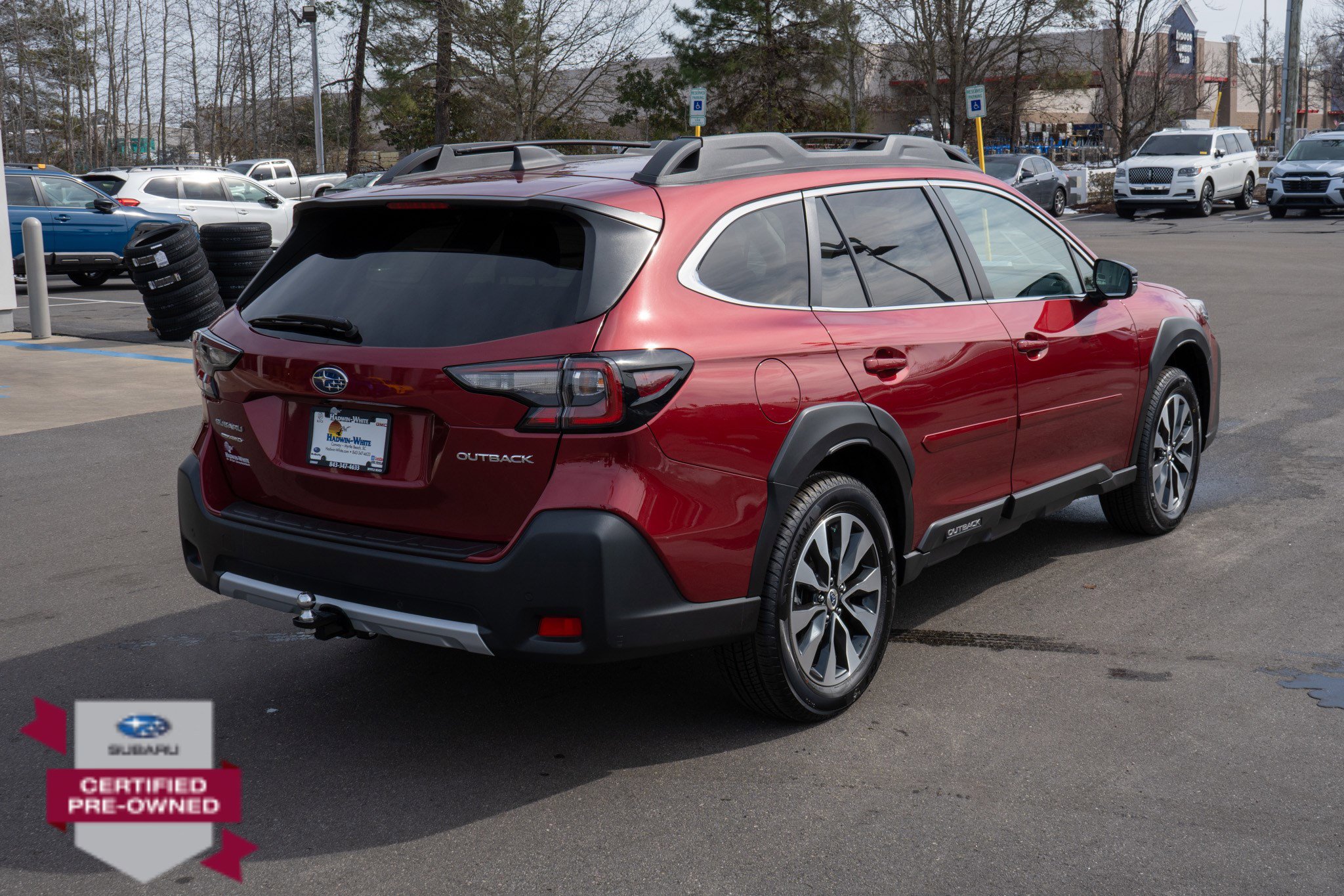 Dealer Certified Pre-Owned. This Subaru Outback boasts a Regular Unleaded H-4 2.5 L/152 engine powering this Variable transmission. SLATE BLACK, PERFORATED LEATHER-TRIMMED UPHOLSTERY -inc: silver or ivory stitching, REAR SEAT BACK PROTECTOR -inc: Part number J501SAN222, REAR BUMPER COVER -inc: Part number E771SAN100. This Subaru Outback Features the Following Options Power Moonroof & Heated Steering Wheel & Nav System -inc: DriverFocus (Driver Monitoring System), Power Moonroof, tilt up and internal retracting w/auto-open/close and laminated UV, dark tinted glass, Heated Steering Wheel, Radio: Subaru STARLINK 11.6 Multimedia Nav System, AM/FM stereo, HD Radio, valet mode, multi-touch gesture high resolution display screen, voice activated controls and navigation, Bluetooth audio streaming and hands-free phone connectivity w/SMS text messaging (refer to subaru.com for cell phone compatibility), Near Field Communication (NFC), TomTom navigation software w/What3words, iPod control capability, SiriusXM 360L Platinum trial (4 months free trial/subscription required after), SiriusXM Traffic (3 years free trial/subscription required after), SiriusXM Travel Link (3 year free trial/subscription required after), smartphone integration: Android Auto and Apple CarPlay w/full screen view and wireless connection and STARLINK cloud applications (refer to subaru.c, LED UPGRADE -inc: Part number H461SAN030, CRIMSON RED PEARL, CARGO NET -inc: Part number F551SAN000, AUTO-DIMMING EXTERIOR MIRROR W/APPROACH LIGHT -inc: Part number J201SAN300, Wireless Phone Connectivity, Window Grid And Roof Mount Antenna, Wheels: 18 x 7J Black Aluminum-Alloy -inc: machine finish.