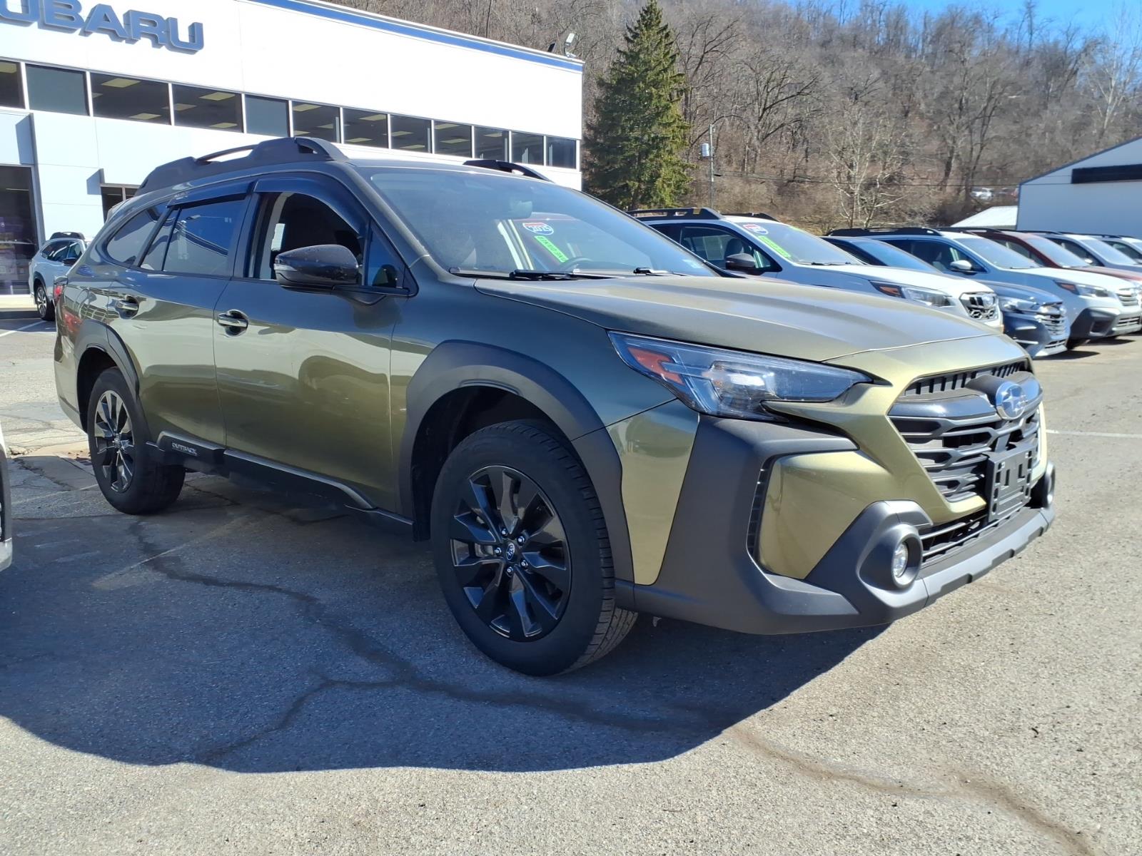 Recent Arrival! 2024 Subaru Outback Onyx Edition Autumn Green Metallic Bluetooth, MP3- USB / I-Pod ready, moonroof sunroof, leather, recent trade in, remainder of factory warranty, heated seats, one owner. CARFAX One-Owner. 26/32 City/Highway MPG. Proudly serving: Wheeling, Pittsburgh, Moundsville, Steubenville, Washington, Monroeville, Moon Township, Penn Hills, Carnegie, Cranberry Township, North Huntington, Butler County, Allegheny County, Huntington, Charleston, Morgantown, Columbus, Cleveland, Youngstown, Wintersville, and all of greater Pennsylvania, West Virginia, Ohio, and Maryland.