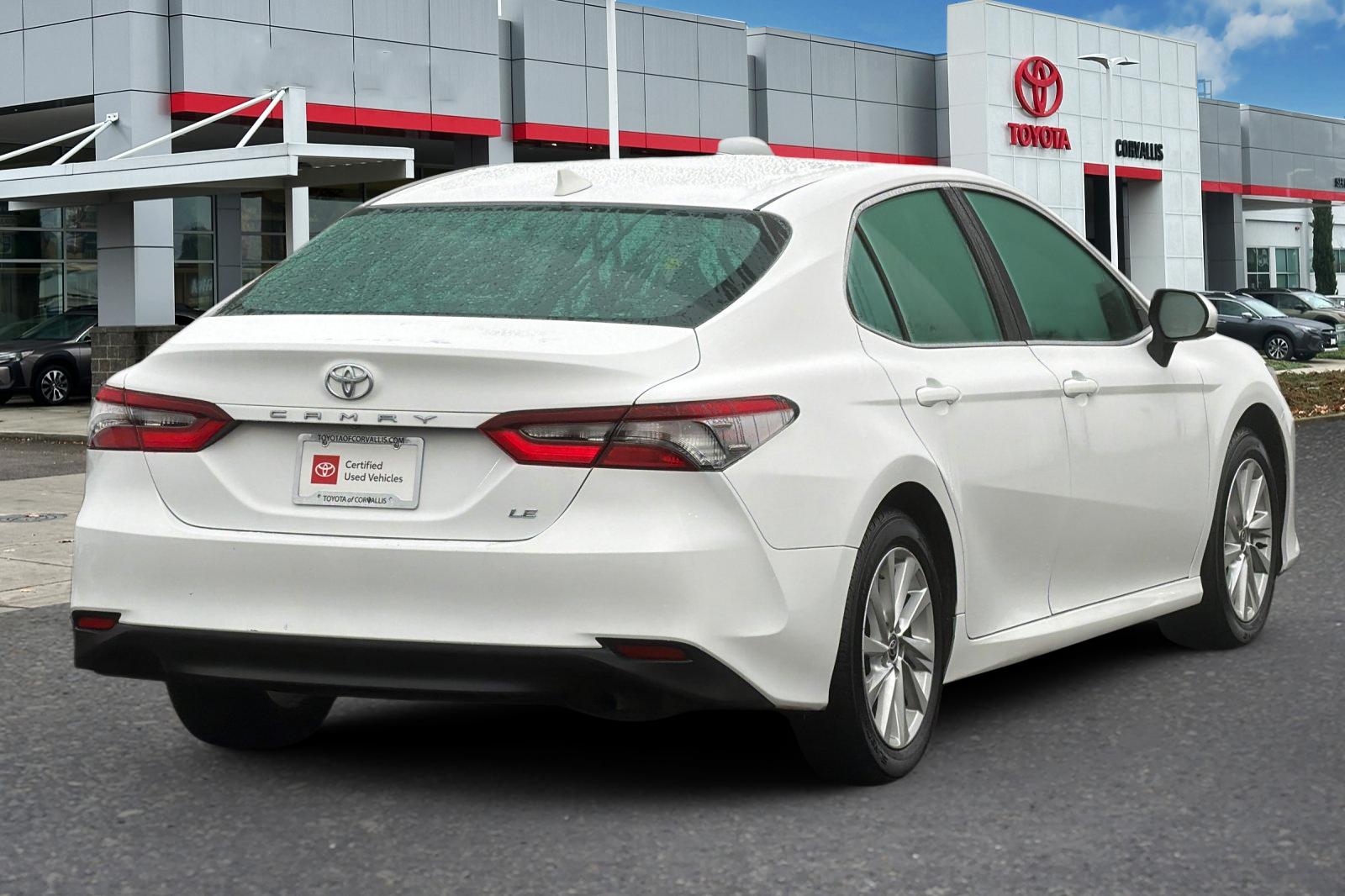 CARFAX One-Owner. Clean CARFAX. Bluetooth, Hands-Free, Back up Camera, Vehicle Just Arrived or in Transit going through Service and Reconditioning. Call for Details!, Keyless Entry, Camry LE, 8-Speed Automatic, AM/FM radio: SiriusXM, Exterior Parking Camera Rear, Front Bucket Seats, Wheels: 17" x 7.5J Alloy. Certified. 28/39 City/Highway MPG LE Toyota Gold Certified Details: Vehicle History, Roadside Assistance for 7 Year / 100,000 Mile. Standard New-Car Financing Rates Available. Warranty honored at over 1,400 Toyota dealers in the continental U.S. & Canada. Trade-ins accepted. Trouble-free handling of your transaction, including DMV paperwork. 160 Point Inspection. Warranty Deductible: $0. Transferable Warranty. Powertrain Limited Warranty: 84 Month/100,000 Mile (whichever comes first) from TCUV purchase date. Roadside Assistance. Limited Warranty: 12 Month/12,000 Mile Limited Comprehensive Warranty: 12 Month/12,000 Mile (whichever comes first) from certified purchase date. As a premier Oregon dealer, we have a huge selection of new and used vehicles from which to choose. Online and offline customers enjoy special vehicle offers every day. We offer excellent service & parts, an online inventory, and outstanding financing options, making us a preferred dealer in Corvallis. Ready to set up a test drive? Visit our dealership in Corvallis, OR today!