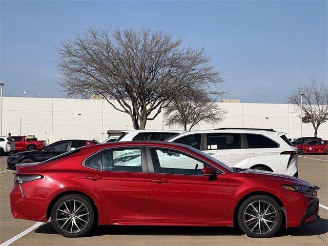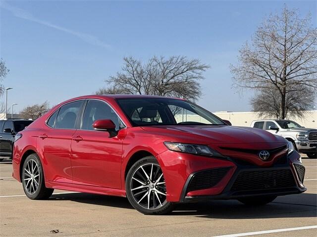 Experience the Thrill of Driving with the 2024 Toyota Camry SE in Supersonic Red: Where Performance Meets Sophistication in Every Mile. Step into the 2024 Toyota Camry SE and discover a driving experience that seamlessly blends comfort, style, and advanced technology. This used sedan, with its striking Supersonic Red exterior, is designed for those who appreciate both performance and elegance. Under the hood, the 2.5L I4 DOHC 16V engine paired with an 8-speed automatic transmission offers a smooth yet powerful ride, perfect for navigating city streets or cruising on the highway. Safety is paramount in the Camry SE, featuring a suite of advanced systems like Lane Departure Warning, Front Collision Mitigation, and Evasion Assist, ensuring peace of mind on every journey. The Adaptive Cruise Control and Lane Keeping Assist further enhance your driving comfort, making long trips more enjoyable. Inside, the Camry SE offers a modern, driver-focused cabin with a leather steering wheel and adjustable lumbar support for the ultimate in comfort. Stay connected with Bluetooth and Smart Device Integration, while the WiFi Hotspot keeps you linked to the world. For those who value both practicality and performance, the 2024 Toyota Camry SE is the ideal companion on the road.