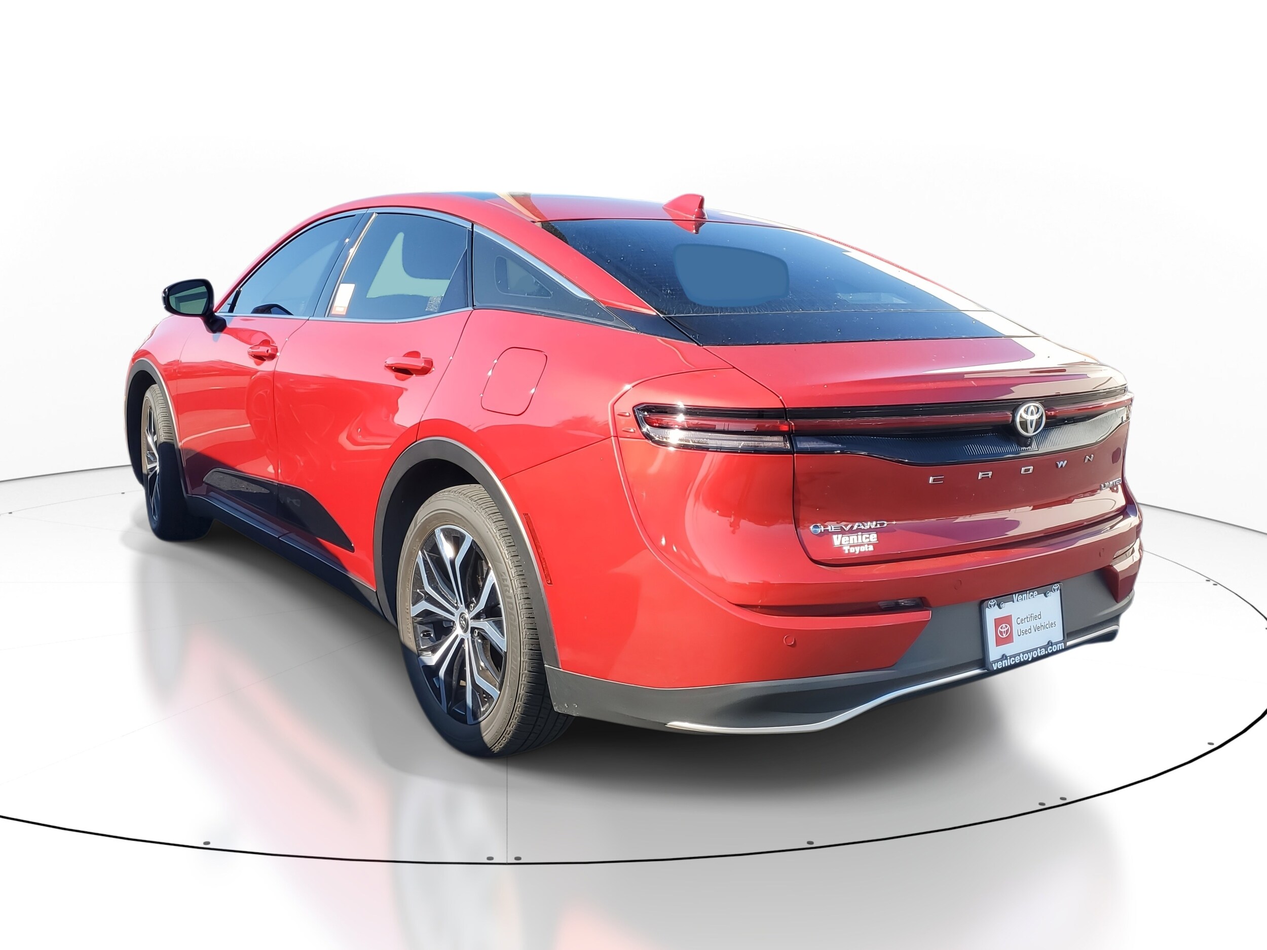 2024 Toyota Crown 2.5L 4-Cylinder DOHC Supersonic Red Limited Package. This vehicle also comes equipped with: Limited Package, Toyota Certified Used Hybrids Certified, 11 Speakers, 4-Wheel Disc Brakes, 8-way Adjustable Heated/Ventilated Front Seats, ABS brakes, Air Conditioning, Alloy wheels, AM/FM radio: SiriusXM, Apple CarPlay/Android Auto, Auto High-beam Headlights, Auto-dimming Rear-View mirror, Automatic temperature control, Bodyside moldings, Brake assist, Bumpers: body-color, Compass, Delay-off headlights, Driver door bin, Driver vanity mirror, Dual front impact airbags, Dual front side impact airbags, Electronic Stability Control, Emergency communication system: Safety Connect (1-year trial), Exterior Parking Camera Rear, Four wheel independent suspension, Front anti-roll bar, Front Bucket Seats, Front Center Armrest, Front dual zone A/C, Front reading lights, Fully automatic headlights, Garage door transmitter: HomeLink, Heated door mirrors, Heated front seats, Heated rear seats, Heated steering wheel, Illuminated entry, Knee airbag, Leather Seat Trim, Leather Shift Knob, Leather steering wheel, Low tire pressure warning, Memory seat, Navigation system: Dynamic Navigation (3-year trial), Occupant sensing airbag, Outside temperature display, Overhead airbag, Overhead console, Panic alarm, Passenger door bin, Passenger vanity mirror, Power door mirrors, Power driver seat, Power passenger seat, Power steering, Power windows, Radio data system, Radio: Premium Audio w/JBL & Navigation, Rain sensing wipers, Rear anti-roll bar, Rear reading lights, Rear seat center armrest, Rear window defroster, Remote keyless entry, Security system, Speed control, Speed-sensing steering, Split folding rear seat, Steering wheel mounted audio controls, Tachometer, Telescoping steering wheel, Tilt steering wheel, Traction control, Trip computer, Turn signal indicator mirrors, Variably intermittent wipers, Ventilated front seats, and Wheels: 19 x 7 Multi-Spoke Machined 2-Tone Alloy. AWD CVT Recent Arrival! 42/41 City/Highway MPG
