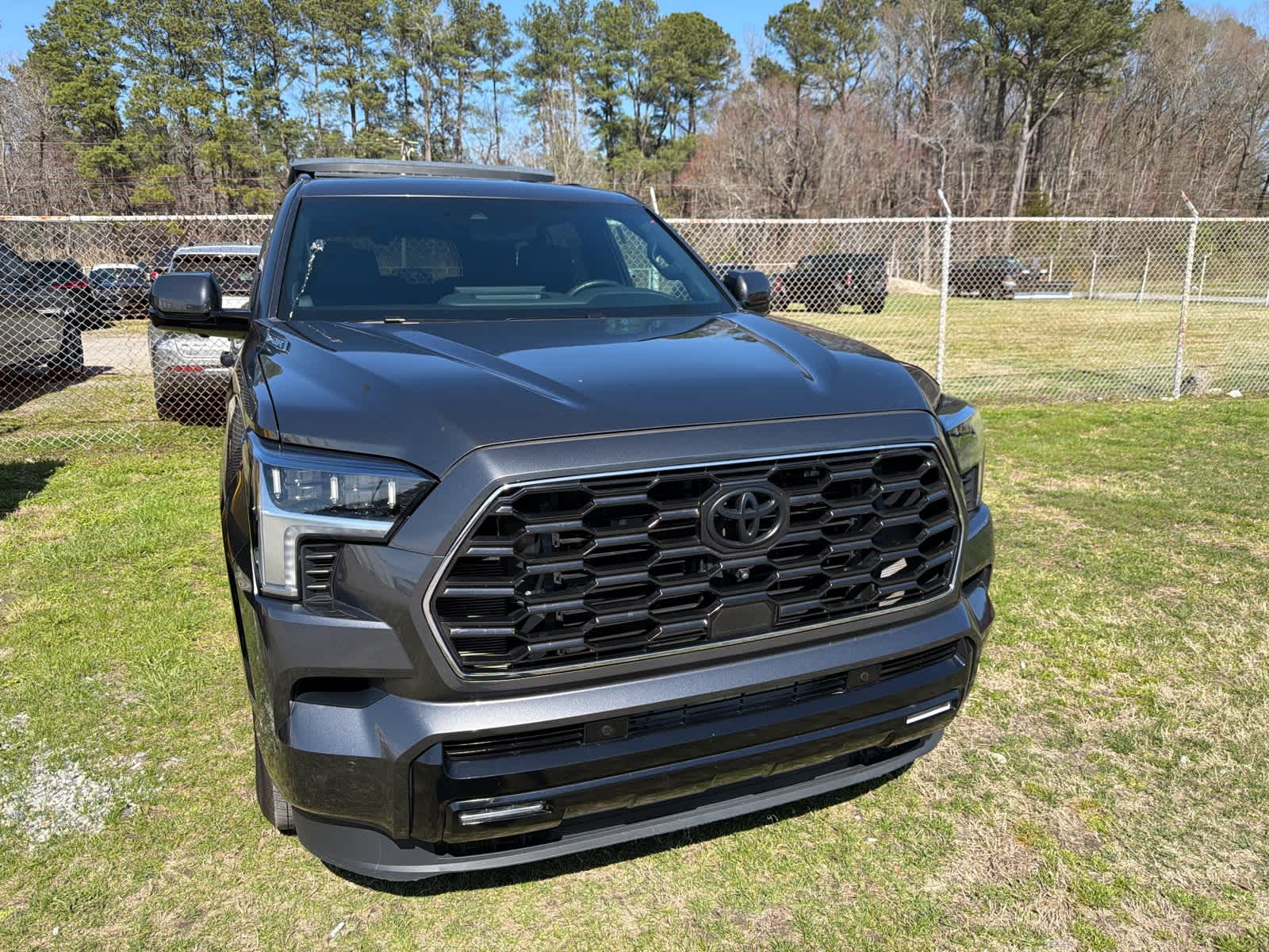 Auto Check One Owner! Excellent Condition. Magnetic Gray Metallic exterior and Black interior. Heated Leather Seats, 3rd Row Seat, NAV, Sunroof, Panoramic Roof, Quad Seats, Turbo, Tow Hitch, Head Up Display (HUD), TRD Roof Rack (TMS), Alloy Wheels. Service Work completed on this Toyota Sequoia included: Complete Multi-Point Inspection, Oil & Filter Change by a Factory Trained Technician, Battery Voltage Test, Tires Inspected, Brake Inspection, Emissions System Check, Professional Detailed Inside and Out, Function Test all Lights, Check the Complete Exhaust System, Cooling System Inspection, Transmission Fluid Inspection, Differential Fluid Inspection, Function Test all Options & Accessories. Leather Seats, Navigation Toyota Platinum with Magnetic Gray Metallic exterior and Black interior features a V6 Cylinder Engine with 437 HP at 5200 RPM.