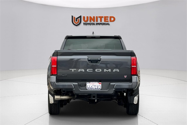 Certified. Toyota Gold Certified Details: Transferable Warranty, Powertrain Limited Warranty: 84 Month/100,000 Mile (whichever comes first) from TCUV purchase date, Roadside Assistance, Vehicle History, Limited Warranty: 12 Month/12,000 Mile Limited Comprehensive Warranty: 12 Month/12,000 Mile (whichever comes first) from certified purchase date, 160 Point Inspection, Roadside Assistance for 7 Year / 100,000 Mile. Standard New-Car Financing Rates Available. Warranty honored at over 1,400 Toyota dealers in the continental U.S. & Canada. Trade-ins accepted. Trouble-free handling of your transaction, including DMV paperwork. CARFAX One-Owner. Clean CARFAX. Local trade, one owner, 4WD, ABS brakes, Alloy wheels, Black Badge Overlay (TMS), Electronic Stability Control, Heated door mirrors, Illuminated entry, Low tire pressure warning, Phone Cables - Smart USB (TMS), Remote keyless entry, Traction control, TRD Panel Air Filter (TMS). 2024 Toyota Tacoma SR5 4WD 8-Speed Automatic For any questions about any vehicle please contact our Sales Department at 760-457-0050.