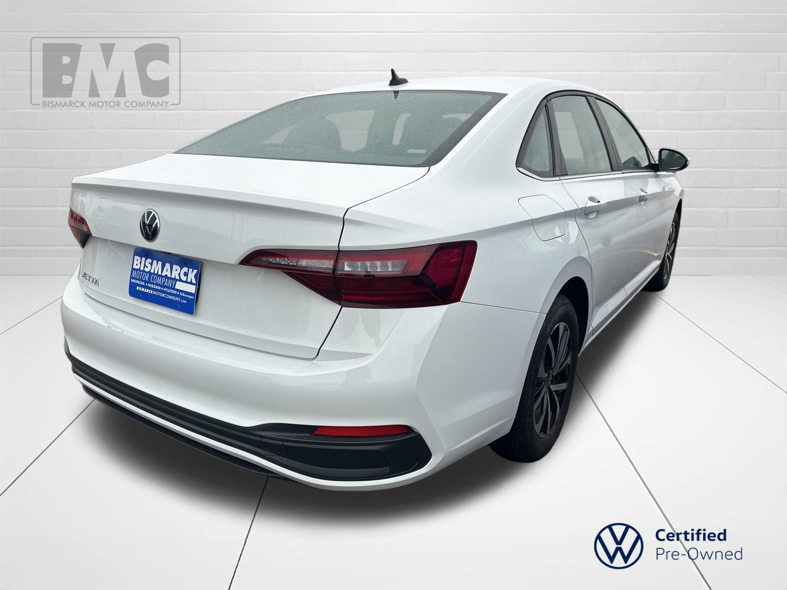 At Bismarck Motor Company, we believe car buying should be transparent and pressure-free. Every vehicle we sell is thoroughly inspected, competitively priced, and comes with our commitment to honest service. No games, no gimmicks—just quality vehicles and people who care about getting you on the road with confidence. The Jetta's 1.5L I-4 DI DOHC Turbocharged engine delivers an exceptional balance of power and efficiency, with an impressive 30 city / 41 highway MPG rating. The 8-Speed Automatic with Tiptronic transmission provides a smooth and responsive driving experience, while the front-wheel-drive layout ensures confident handling in a variety of road conditions. This Jetta is more than just a practical commuter car—it's a well-equipped, stylish sedan that offers a wealth of premium features. From the modern infotainment system with a 6.5" touchscreen to the advanced safety technologies like the Active Blind Spot Monitor, this Jetta is designed to keep you connected, protected, and in control on the road. We're proud to offer this Jetta as a Certified Pre-Owned (CPO) vehicle, which means it has undergone a rigorous 172-point inspection and comes with a comprehensive warranty for your peace of mind. With low mileage and a clean CARFAX history, this Jetta represents an exceptional value for the discerning buyer. Whether you're looking for a reliable daily driver, a family-friendly sedan, or a well-equipped and stylish commuter, this 2024 Volkswagen Jetta 1.5T S deserves a closer look.