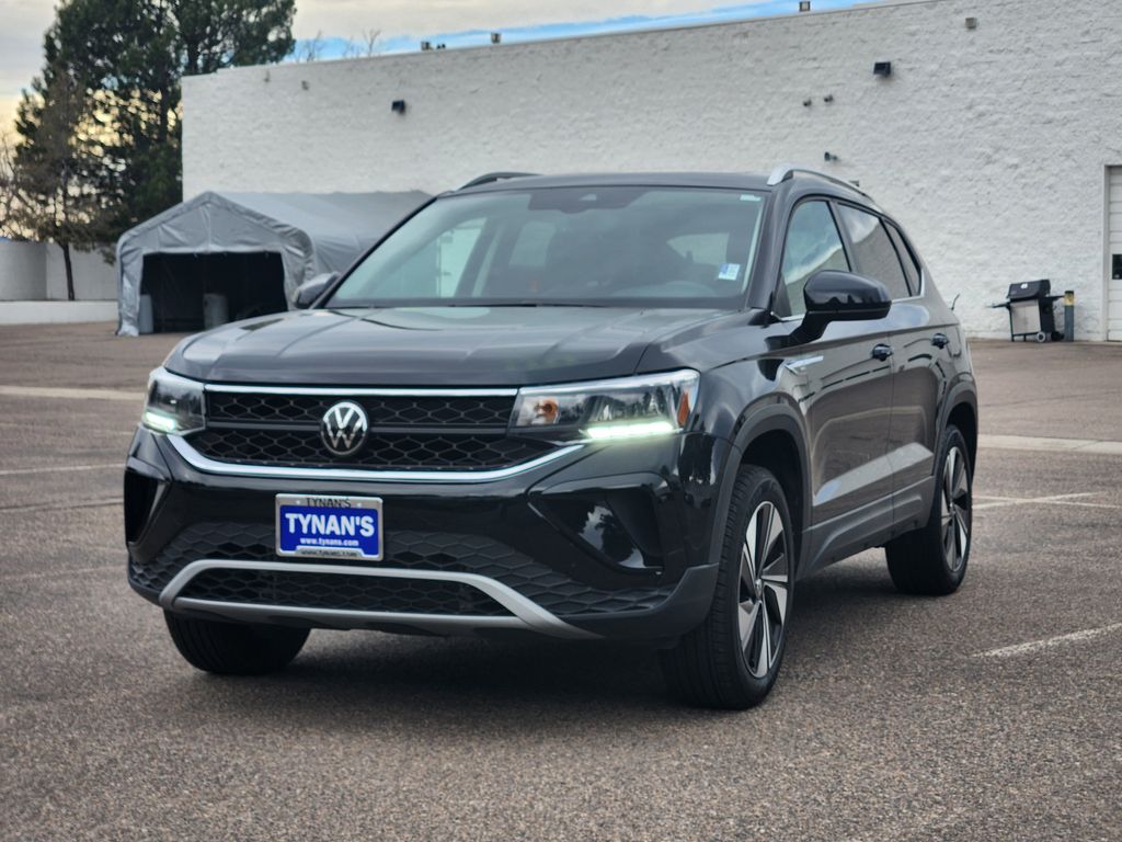Certified. Black 2024 Volkswagen Taos 1.5T SE AWD 7-Speed DSG Automatic with Tiptronic 1.5L I4 Turbocharged DOHC 16V LEV3-SULEV30 158hp. 24/32 City/Highway MPG. Volkswagen Certified Pre-Owned Details: 100+ Point Inspection, Roadside Assistance, Warranty Deductible: $50, Vehicle History, Model Year 2020 and Newer Vehicles: 2-Year or 24,000-Mile (whichever occurs first) Comprehensive Limited Warranty. Model Year 2019 Vehicles: 1-Year or 12,000-Mile (whichever comes first) Comprehensive Limited Warranty. Electric Vehicles Model Year 2019 & Newer: 3-Year or 36,000-Mile (whichever comes first) Comprehensive Limited Warranty. 2 Years of 24-Hour Roadside Assistance, Three Months of SiriusXM Platinum Plan Trial Subscription.