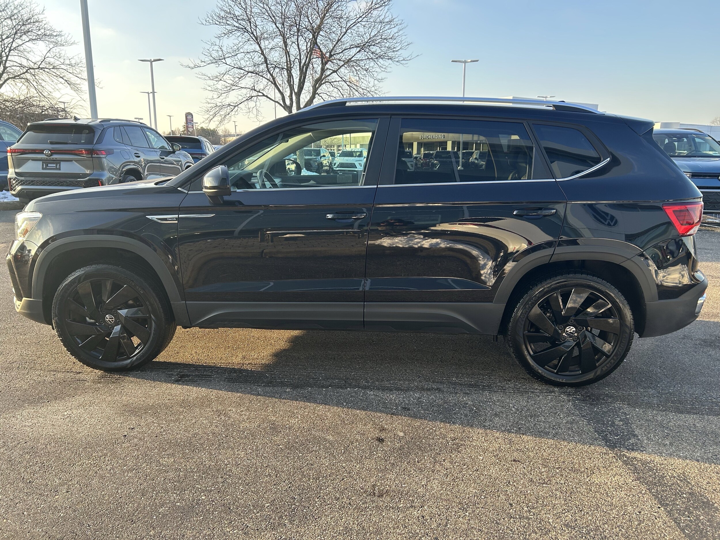 CARFAX One-Owner. Clean CARFAX. Certified. Deep Black Pearl 2024 Volkswagen Taos 1.5T SE 1.5L I4 Turbocharged DOHC 16V LEV3-SULEV30 158hp AWD. One Owner Clean Carfax History report, Heated Seats, AWD | All Wheel Drive, Hard to Find, visit www.vwkings.com or call (513) 677-2710, King's VW has earned GOOGLE 4.7 star rating, Black Wheel Plus Package (DISC), Wheels: 19 Black Painted Alloy (DISC).