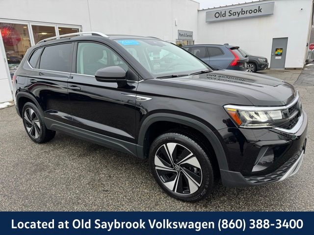VW Certified 2 Year/24,000 Mile Warranty, Located at Old Saybrook Volkswagen, Taos 1.5T SE, 4D Sport Utility, 1.5L I4 Turbocharged DOHC 16V LEV3-SULEV30 158hp, 4-Wheel Disc Brakes, Active Blind Spot Monitor, Brake assist, Electronic Stability Control, Emergency communication system: VW Car-Net Safe & Secure 5-year, Exterior Parking Camera Rear, Four wheel independent suspension, Heated door mirrors, Heated Front Bucket Seats, Heated front seats, Heated steering wheel, Leather Shift Knob, Power driver seat, Wheels: 18" 2-Tone Machined Alloy. CARFAX One-Owner. Clean CARFAX. Certified. Deep Black Pearl 2024 Volkswagen Taos 1.5T SE AWD 7-Speed DSG Automatic with Tiptronic 1.5L I4 Turbocharged DOHC 16V LEV3-SULEV30 158hp.