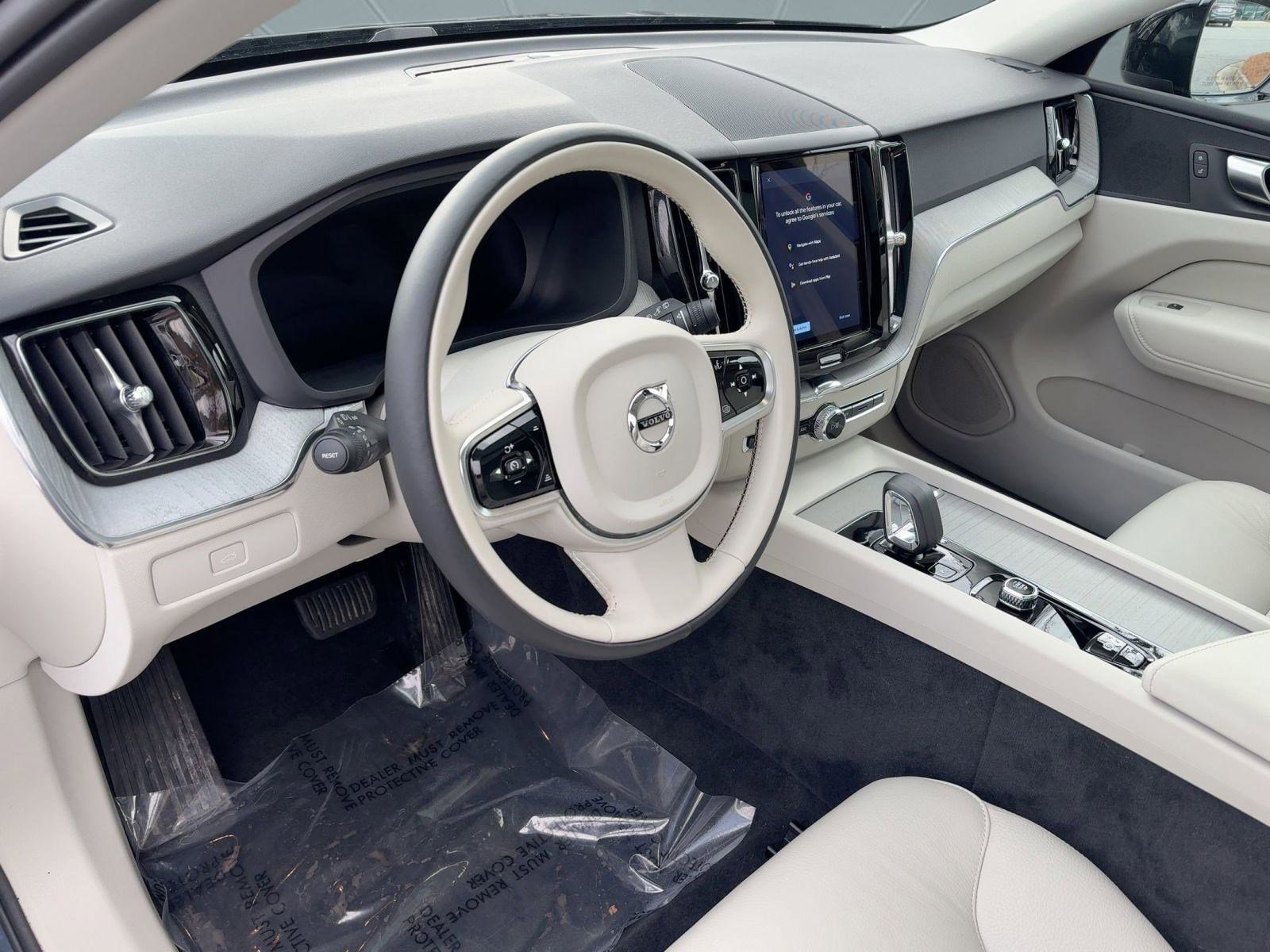 Certified by Volvo 2024 Volvo XC60 B5 AWD Plus in Denim Blue Metallic with Blond Leather interior. Additionally equipped with Climate Package. Original in service date - December 29th, 2023.