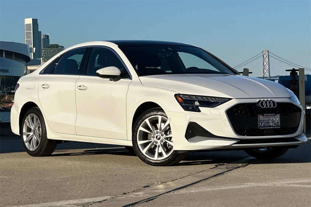 Recent Arrival! Certified. Arkona White 2025 Audi A3 40 Premium Plus AWD. CARFAX One-Owner. Certified pre-owned Details: Warranty Deductible: $0, 125+ Point Inspection, Vehicle History, Roadside Assistance, Certified pre-owned Limited Warranty: For all CPO sales on or after 8/1/23, if New Vehicle Limited Warranty (NVLW) coverage remains at time of CPO purchase, CPO Limited Warranty Coverage commences upon expiration of NVLW and continues for a period of 1 year or 20,000 miles, whichever occurs first. If NVLW coverage has expired at time of CPO purchase, CPO Limited Warranty coverage commences at time of purchase and continues for 1 year or 20,000 miles, whichever occurs first. Roadside Assistance for 1 year with unlimited miles, whichever occurs first. Effective 8/1/23 onward, private party transfers no longer accepted, eligible for previous CPO customers with sale dates prior to 8/1/23 to utilize if they so choose. The Royal Motor Sales dealerships began in 1947, when Walter Anderson started a body shop and opened a pre-owned car sales center in San Francisco, CA. Walter Anderson, In 1956, acquired the Volvo franchise. Royal was one of the first Volvo dealers in the country. Royal Auto Group now has four automotive dealerships and a state of the art collision center in San Francisco. The dealership franchises include: Audi, VW, Volvo, and Mazda. In 2020, the valued team members at Royal sold over 4,000 new and pre-owned cars and serviced more than 40,000. Our company history reinforces the importance of the cornerstone foundations of our business and success, which are: Integrity, Efficiency, Hard Work, Customer Service, and Loyalty. They are our trademarks!
