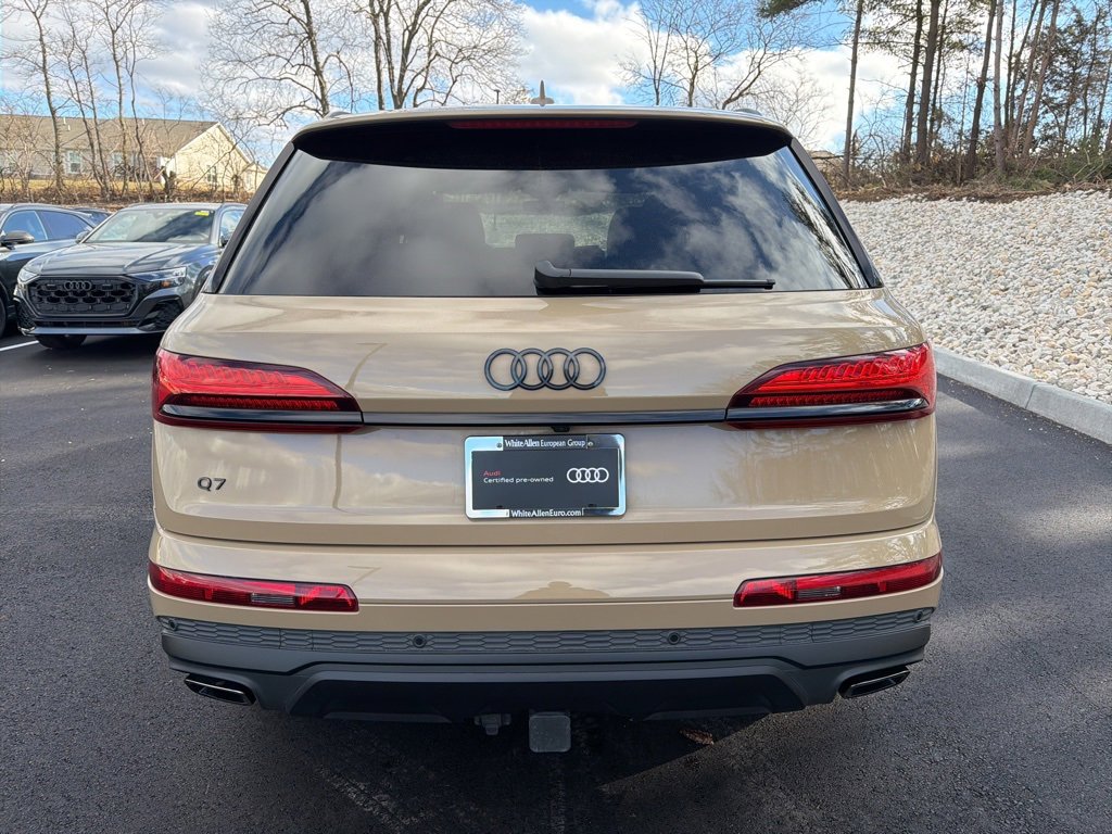 Audi Certified pre-owned 2025 Audi Q7 45 Premium Plus quattro! Sakhir Gold Metallic over Black Leather Heated Seats, Navigation, Android Auto, Apple CarPlay, Backup Camera, Bluetooth, Pano Moonroof, 21" Wheel Package, Anthracite Gray Audi Rings, Bang & Olufsen Premium Sound System with 3D Sound, Black Door Blades, Black Exterior Trim, Black Grille, Black Optic Package, Black Roof Rails, Black Window Surrounds, Convenience Package, Dark Chrome Exhaust Tips, Heated Steering Wheel, Illuminated Door Sills, LED Interior Lighting Package Plus, Top View Camera System, Wireless Phone Charging Pad and More!