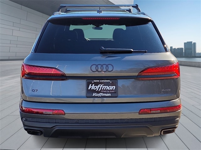 Hoffman Audi of New London brings value to your driveway. Every vehicle has received a multi-point section by factory trained technicians along with a reconditioning of the exterior and interior. We make sure the vehicle is up to our standards before you take it home. Visit us in store or use our Hoffman At Home tool to buy online, we can even have the vehicle delivered to you! Certified. Samurai Gray Metallic 2025 Audi Q7 45 Premium quattro 8-Speed Automatic with Tiptronic 2.0L 4-Cylinder TFSI RECENT HOFFMAN TRADE, CLEAN CAR FAX...NO ACCIDENTS, AUDI CERTIFIED, SERVICE RECORDS AVAILABLE, ONE OWNER, SUNROOF MOONROOF, REMAINDER OF FACTORY WARRANTY, 6 MONTH OR 6,000 POWERTRAIN WARRANTY, Anthracite Gray Audi Rings, Bang & Olufsen Premium Sound System with 3D Sound, Black Door Blades, Black Exterior Trim, Black Grille, Black Roof Rails, Black Window Surrounds, Convenience Plus Package, Dark Chrome Exhaust Tips, Heated Steering Wheel, LED Interior Lighting Package Plus, Navigation system: Audi MMI Navigation plus with Touch Response, Top View Camera System, Traffic Sign Recognition, Wheels: 20" 5-Double-Spoke Bicolor Finish.