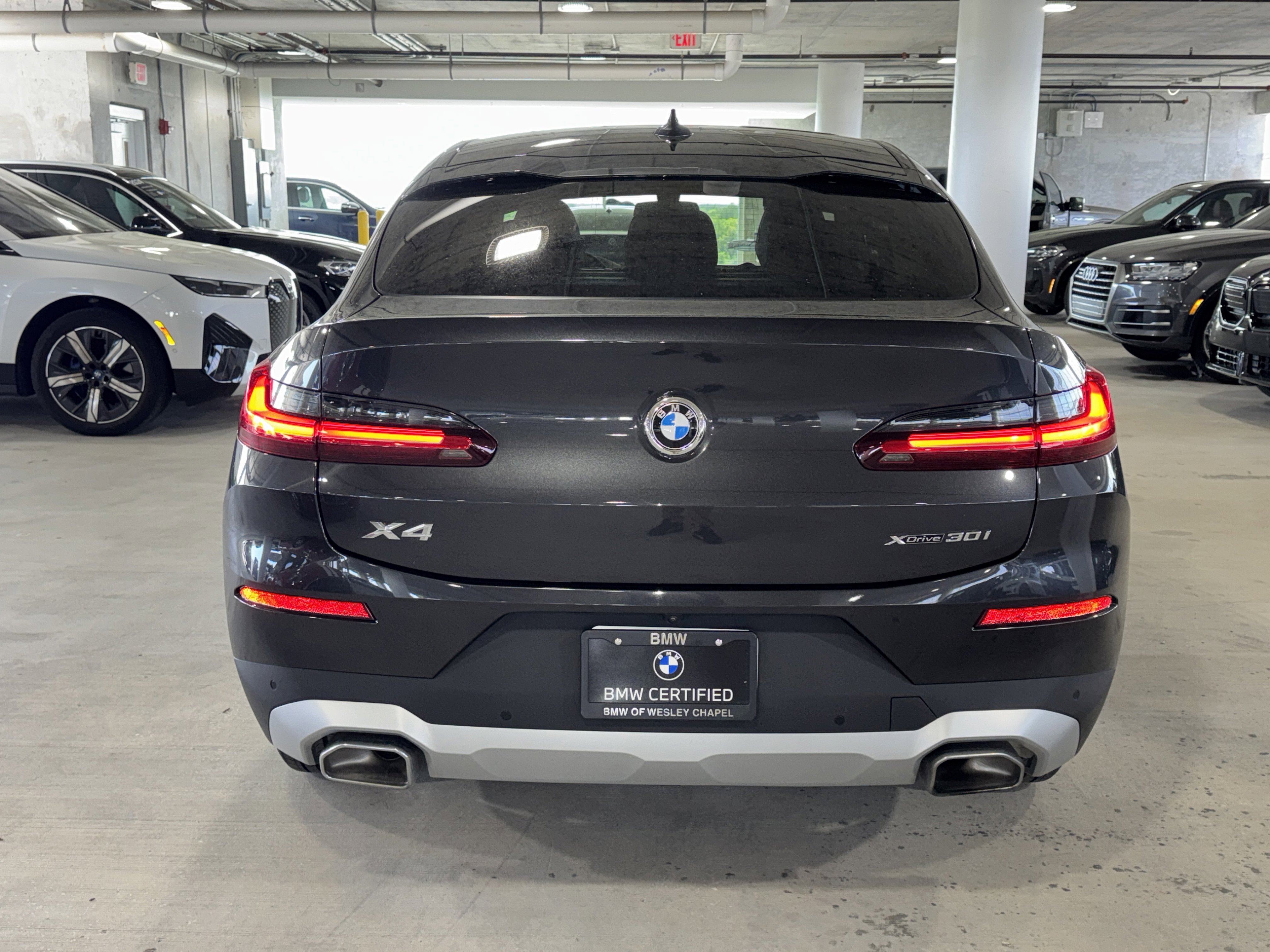 Factory BMW Certified. One owner. Clean Carfax. Premium Package. Parking Assistance Package. Connected Package Pro. Active Park Distance Control, Comfort Access Keyless Entry, Connected Package Pro, Head-Up Display, Heated Steering Wheel, Lumbar Support, Parking Assistance Package, Parking Assistant Plus, Premium Package, Rear-View Camera, Remote Engine Start, Surround View with 3D View. Recent Arrival! Dark Graphite Metallic 2025 BMW X4 xDrive30i AWD 8-Speed Automatic Sport 2.0L I4 TwinPower Turbo. BMW/MINI of Wesley Chapel is proud to serve all Florida BMW and MINI enthusiasts. Just one visit and you'll see just how dedicated we are to your complete satisfaction. We have a friendly and knowledgeable staff ready to help you every step of the way. Whether it's sales, service or financing, you'll always get the attention you deserve from BMW/MINI of Wesley Chapel. Call BMW/MINI of Wesley Chapel at (813) 448-7569 to confirm availability and schedule a no-obligation test drive! We are located at 26645 FL-56 Wesley Chapel, FL 33544.