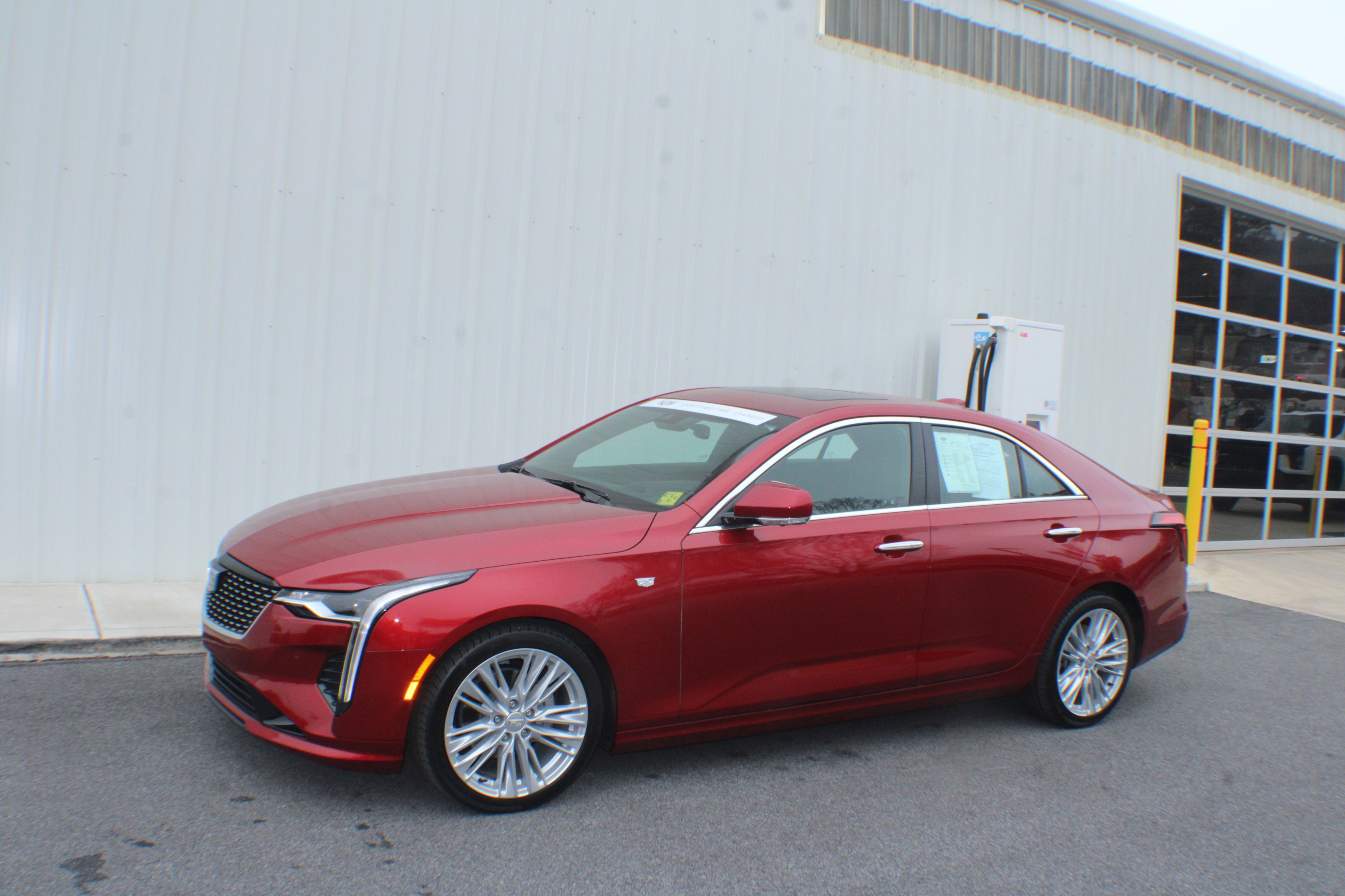 This certified pre-owned 2025 Cadillac CT4 Premium Luxury Rear Wheel Drive Sedan offers a luxurious driving experience with a 2.0L Turbo 4-cylinder engine and a range of comfort and safety features. The vehicle is equipped with leather seating surfaces, ventilated and heated front seats, a head-up display, and advanced technology for convenience and peace of mind. With its striking Radiant Red Tintcoat exterior and a refined interior, this CT4 provides both style and comfort for every journey.