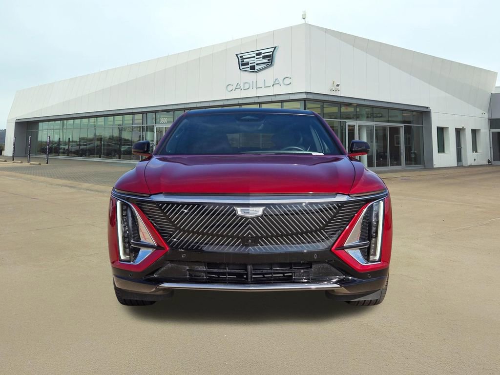 The 2025 Cadillac Lyriq Luxury 3 is a Certified Pre Owned electric SUV located at Frank Kent Cadillac in Arlington, Texas. This vehicle features a Radiant Red Tintcoat exterior and a Noir with Santorini Blue accents interior. With 10,685 miles on the odometer, it offers a 307-mile electric range and a combined fuel economy of 92. The Lyriq is equipped with advanced technology, a panoramic power sunroof, heated seats, and a host of driver assistance features. Please verify all information with a Frank Kent Cadillac of Arlington Sales Representative.