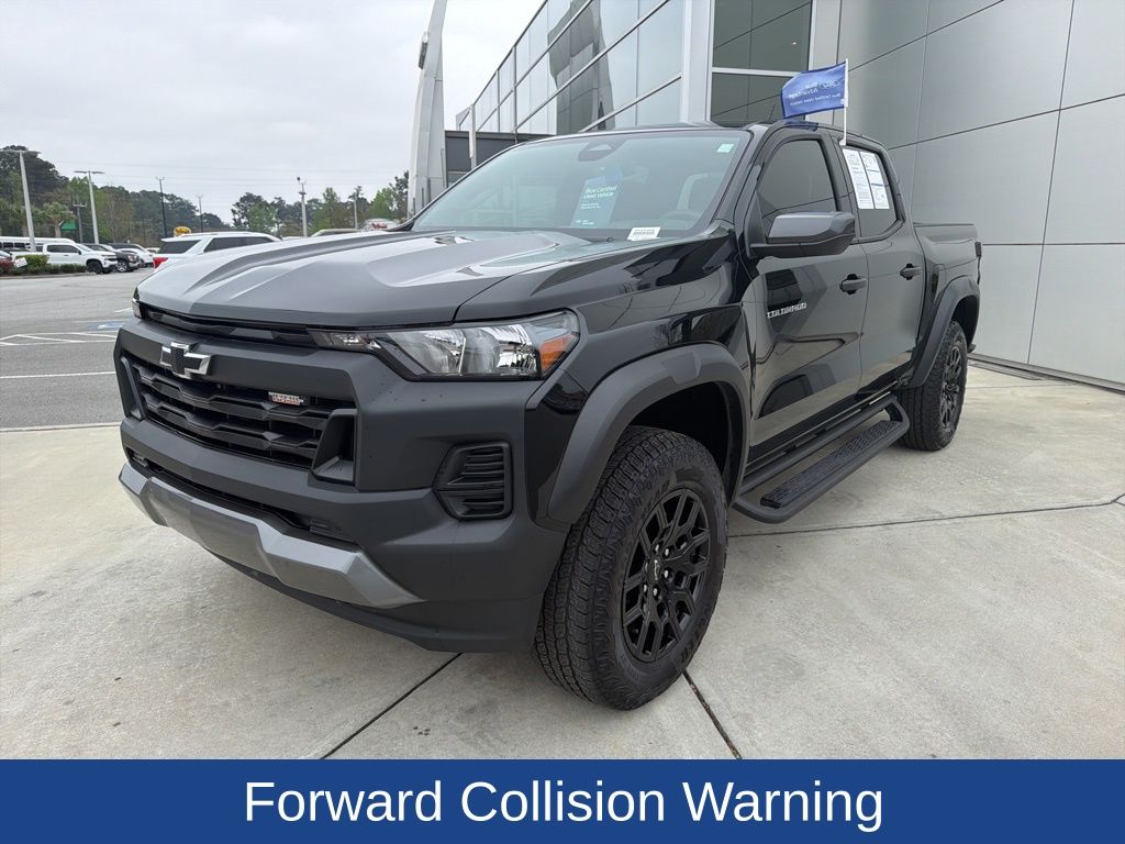 Rugged design and modern capability come together in this 2025 Chevrolet Colorado Trail Boss with 23,846 miles, a midsize truck built to handle tough terrain and daily driving alike. Equipped for the trail, it features an automatic locking rear differential, factory-added off-road assist steps, and bold wheel flares that enhance both capability and stance. Trailering is made easier with trailer brake control and hitch guidance, giving you added confidence when hauling. Inside, cloth front bucket seats provide comfort and durability, while advanced technology keeps you connected. An 11-inch touchscreen and 11-inch digital driver information center deliver a modern, easy-to-use interface, and keyless start adds everyday convenience. Safety and driver-assist features include forward collision alert, lane keep assist, automatic emergency braking, following distance indicator, and IntelliBeam headlamps for added visibility and awareness. Well-equipped, capable, and ready for work or adventure, this Colorado Trail Boss offers the right balance of toughness and technology.