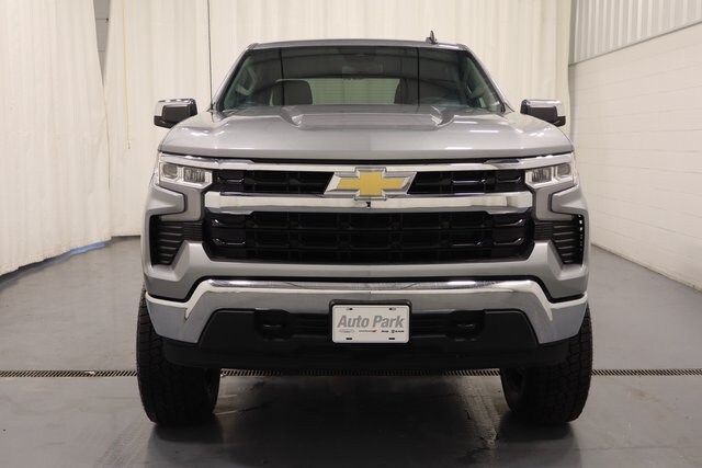 2025 Chevrolet Silverado 1500 Slate Gray Metallic LT 4WD accident free vehicle history, non-smoker, one owner, new 6" lift - new fuel wheels, EcoTec3 5.3L V8, 10-Speed Automatic, 4WD, Jet Black with cloth seat trim, 10-Way Power Driver Seat with lumbar, 12.3" Multicolor Reconfigurable Digital Display, 120-Volt Bed Mounted Power Outlet, 120-Volt Interior Power Outlet, All-Star Edition, Apple CarPlay/Android Auto, automatic temperature control, Convenience Package, Deep-Tinted Glass, Delay-off headlights, Dual Rear USB Ports (Charge Only), Dual-Zone Automatic Climate Control, Electric Rear-Window Defogger, Electronic Stability Control, Fully automatic headlights, HD Rear Vision Camera, Heated door mirrors, Heated Driver & Front Outboard Passenger Seats, Heated Power-Adjustable Outside Mirrors, Heated Steering Wheel, Hitch Guidance, Integrated Trailer Brake Controller, IntelliBeam Automatic High Beam On/Off, Keyless Open & Start, LED Cargo Area Lighting, Manual Tilt/Telescoping Steering Column, Power door mirrors, Power driver seat, Premium audio system: Chevrolet Infotainment 3 Premium, Remote Start Package, Remote Vehicle Starter System, Standard Suspension Package, Steering wheel mounted audio controls, Theft Deterrent System (Unauthorized Entry), Trailering Package, Wrapped Steering Wheel. Welcome to Auto Park Chrysler, Dodge, Jeep, Ram of Plymouth Indiana. Auto Park Chrysler, Dodge, Jeep and Ram is the Automotive Headquarters for New and Pre-Owned sales in Plymouth, South Bend, Mishawaka, Elkhart, Bremen, Knox, Rochester and Winamac, IN. Here at Auto Park Chrysler, Dodge and Ram we provide an award-winning customer experience for new and pre-owned shoppers throughout Plymouth and South Bend. We have the largest selection of new and pre-owned trucks and SUVs in the area providing simple financing and factory certified service and repairs. We are the largest best priced pre-owned dealer in central Indiana providing in house financing for all shoppers.