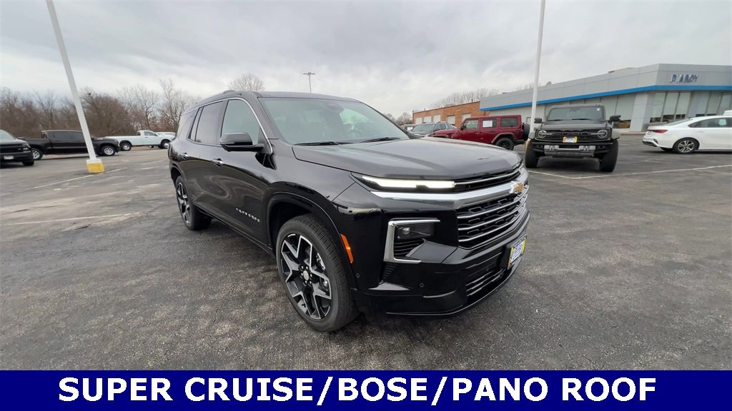 Recent Arrival! Priced below KBB Fair Purchase Price! Carfax One-Owner. Certified. Mosaic Black Metallic 2025 Chevrolet Traverse High Country AWD 8-Speed Automatic 2.5L DOHC AWD. Odometer is 9594 miles below market average! Certification Program Details: CarBravo Certified: Vehicles that are 10 model years old or less and have 100,000 miles or less at the time of sale. These vehicles come with a standard 12-month/12,000-mile limited bumper-to-bumper warranty. Discover the D'Arcy Difference! We care - we are here and we are ready to help! Stop by www.darcyautos.com today to see up to date information, including showroom and service hours, and how to make an appointment or schedule delivery. This vehicle has the Pulse Brake Light installed to help reduce rear end collisions. $399 will be added to the purchase price for this accessory. D’Arcy Motors has been serving Joliet and its surrounding communities for over 25 years. Our business philosophy, which is to sell cars one car at a time and to make the guest the most important part of the process, has remained the same since 1991. Putting our guests first means being a good corporate citizen and investing back into our community.