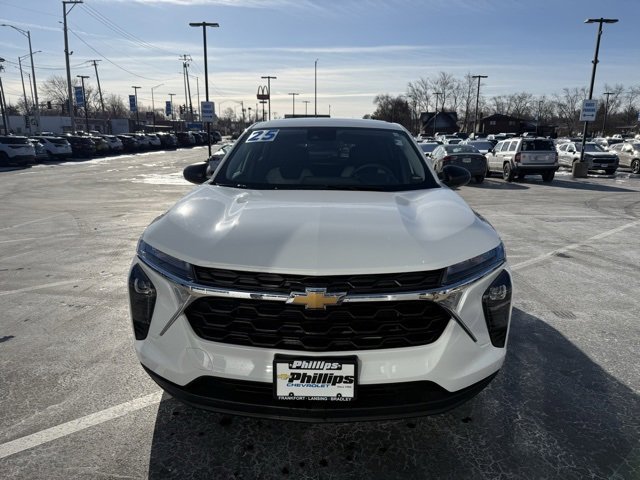 CarBravo Certified, One Owner!, Accident FREE, No Added Cert. Fees, Apple CarPlay, Keyless Entry, Forward Collision Alert, Side Blind Zone Alert, Backup Camera, Bluetooth, Power Windows/Locks, Power Seating, Push Button Start!, Remote Start, Cruise Control, Carfax Buyback Guarantee, Trax LS, 4D Sport Utility, 1.2L Ecotec Turbo DOHC DI w/VVT, 6-Speed Automatic, FWD, Summit White, Jet Black/Gray With Blue Accents Cloth, 2-Way Adjustable Front Head Restraints, 3.50 Final Drive Axle Ratio, 4-Speaker Audio System Feature, 4-Way Manual Front Passenger Seat Adjuster, 4-Wheel Disc Brakes, ABS brakes, AM/FM radio: SiriusXM, Auto High-beam Headlights, Brake assist, Bumpers: body-color, Cloth Seat Trim, Compass, Delay-off headlights, Driver door bin, Driver vanity mirror, Dual front impact airbags, Dual front side impact airbags, Electronic Stability Control, Emergency communication system: OnStar One Essentials, Exterior Parking Camera Rear, Front anti-roll bar, Front Bucket Seats, Front Center Armrest, Front reading lights, Front wheel independent suspension, Fully automatic headlights, Illuminated entry, Low tire pressure warning, Occupant sensing airbag, Outside temperature display, Overhead airbag, Overhead console, Panic alarm, Passenger door bin, Passenger vanity mirror, Power door mirrors, Preferred Equipment Group 1LS, Premium audio system: Chevrolet Infotainment 3, Rear window defroster, Rear window wiper, Remote keyless entry, Security system, Speed control, Split folding rear seat, Spoiler, Steering wheel mounted audio controls, Tachometer, Telescoping steering wheel, Tilt steering wheel, Traction control, Trip computer, Variably intermittent wipers, Wheels: 17 Steel with Covers. 2025 Chevrolet Trax Summit White LS 4D Sport Utility FWD 6-Speed Automatic 28/32 City/Highway MPG 1.2L Ecotec Turbo DOHC DI w/VVT. Recent Arrival!