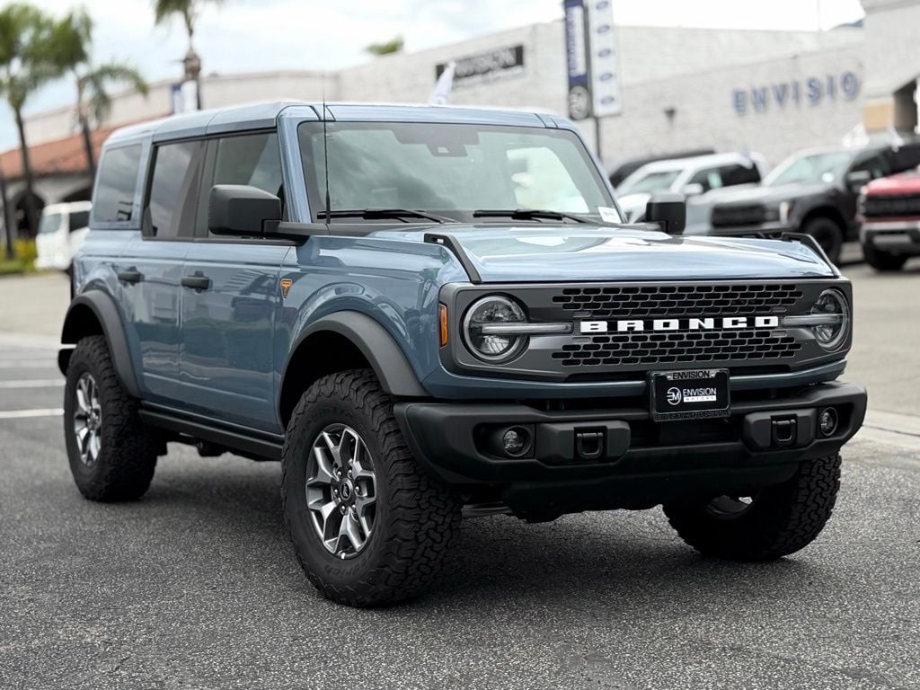 Certified. Azure Gray Metallic 2025 Ford Bronco Badlands 4WD 10-Speed Automatic 2.7L EcoBoost V6 Bronco Badlands, 4D Sport Utility, 2.7L EcoBoost V6, 10-Speed Automatic, 4WD, Azure Gray Metallic, Black Onyx Leather, 2-Door Intelligent Access w/Lock/Unlock, Ambient Footwell Lighting, Connected Navigation, Dr & Pass Illuminated Sliding Visor Vanity Mirrors, Dual Smart Charging USB Ports, Dual-Zone Electronic Automatic Temperature Control, Equipment Group 332A Mid Package, Front Row Heated Seats, Power Outlet - Back Side of Center Floor Console, Rear Parking Sensors. Recent Arrival! Envision Ford & Lincoln of Duarte has won the 16-Time President's Award for customer satisfaction. We look forward to serving you! Envision Ford of Duarte is dedicated to your satisfaction before, during, and after your purchase.
