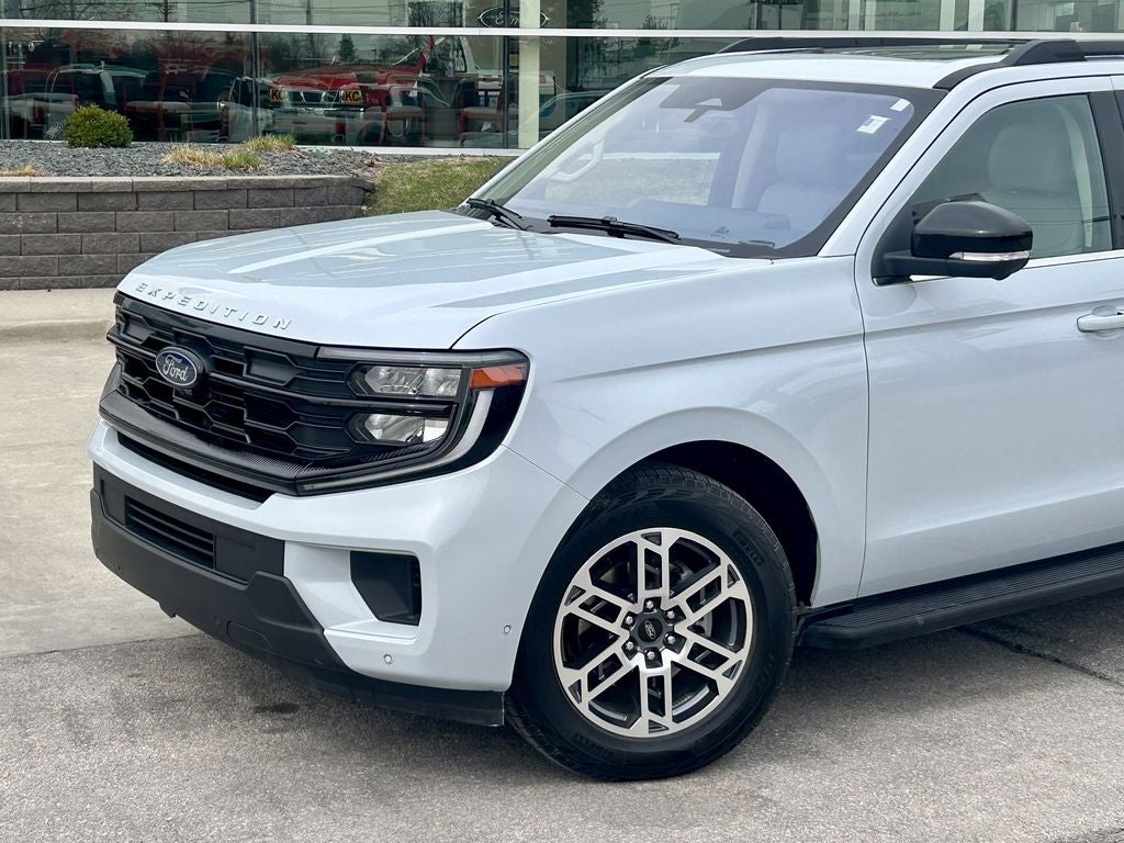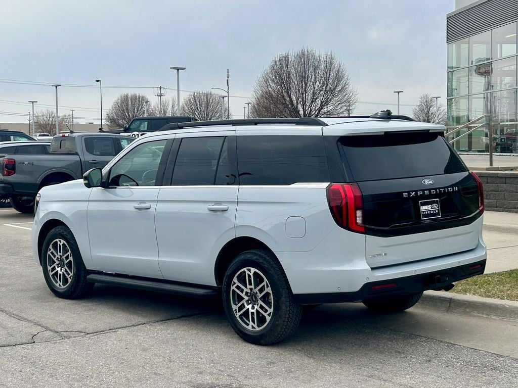 The 2025 Ford Expedition Active offers a dynamic blend of outdoor-ready versatility and modern capability, finished in a sleek Space Silver Metallic exterior. Powered by the formidable twin-turbocharged 3.5L V6 EcoBoost engine delivering 400 horsepower and 480 lb-ft of torque, this full-size SUV provides confident towing power and smooth performance for every adventure through its advanced 10-speed automatic transmission and an intelligent Terrain Management System 4WD with selectable drive modes including dedicated off-road settings. The adventure-inspired Active trim outfits the Expedition with distinctive 18-inch machined aluminum wheels with all-terrain tires, unique exterior accents, and rugged roof rails. Inside, you'll find durable and premium leather surfaces with heated front seats, a leather-wrapped steering wheel with mounted controls, and easy-to-clean interior trim. The versatile three-row cabin offers seating for up to eight and generous cargo space, along with tri-zone automatic climate control and a 6-speaker audio system with SYNC 4 connectivity for family adventures. Advanced technology features include the SYNC 4 infotainment system with a 12-inch touchscreen, wireless Apple CarPlay and Android Auto integration, and a 4G LTE Wi-Fi hotspot. The description of the vehicle from the dealer.