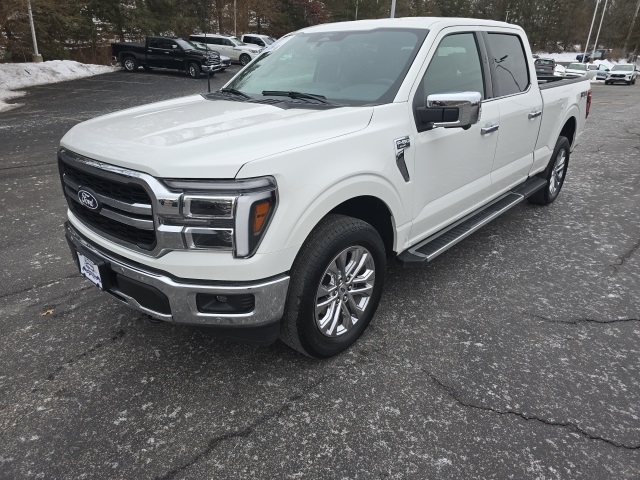 This Ford F-150 is well equipped and includes the following features, 4WD, 4 Pickup Box Tie-Down Plates, 4×4 FX4 Off-Road Bodyside Decal, 6″ Angular Bright Anodized Step Bar, Bed Utility Package, Electronic Locking w/3.31 Axle Ratio, Equipment Group 501A Mid, FX4 Off-Road Package, GVWR: 7,200 lbs Payload Package, Heated front seats, Hill Descent Control, Illuminated Driver & Passenger Visors, LED Box Lighting, Monotube Rear Shocks, Navigation system: Connected Navigation, Off-Road Tuned Front Shock Absorbers, Power Tailgate, Power-Sliding Rear Window, Pro Access Tailgate, Radio: B&O Sound System by Bang & Olufsen, Rock Crawl Mode, SYNC® 4 w/Enhanced Voice Recognition, Tray Style Floor Liner w/o Carpet Mats, Ventilated front seats, Wheels: 20″ Chrome-Like PVD. White 2025 Ford F-150 LARIAT 4WD 3.5L V6 EcoBoost®.