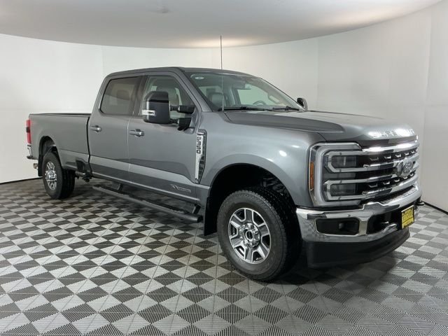 Certified. Carfax One-Owner. Clean Carfax. Grey 2025 Ford F-350SD Lariat 4D Crew Cab Power Stroke 6.7L V8 DI 32V OHV Turbodiesel 10-Speed Automatic 4WD Priced below KBB Fair Purchase Price! CARFAX One Owner, CARFAX Zero Accidents, Long Bed, 4x4, Ford Gold Certified Certified, 4WD, 190 Amp Alternator, 3.73 Axle Ratio, 4-Wheel Disc Brakes, 8 Speakers, ABS brakes, Adjustable pedals, Air Conditioning, Alloy wheels, AM/FM radio: SiriusXM with 360L, Auto High-beam Headlights, Auto-dimming Rear-View mirror, Automatic temperature control, BLIS with Cross-Traffic Alert, Brake assist, Bumpers: chrome, Compass, Delay-off headlights, Driver door bin, Driver vanity mirror, Dual front impact airbags, Dual front side impact airbags, Electronic Stability Control, Emergency communication system: SYNC 4 911 Assist, Flow-Through Console, Front ActiveX Trimmed 40/Console/40 Seats, Front anti-roll bar, Front Bucket Seats, Front Center Armrest, Front dual zone A/C, Front fog lights, Front reading lights, Fully automatic headlights, Garage door transmitter, Heated door mirrors, Heated front seats, Heated rear seats, Heated steering wheel, Illuminated entry, Internet access capable: FordPass Connect 5G, Low tire pressure warning, Memory seat, Navigation System, Outside temperature display, Overhead airbag, Overhead console, Panic alarm, Passenger door bin, Passenger vanity mirror, Pedal memory, Power door mirrors, Power driver seat, Power passenger seat, Power steering, Power windows, Privacy Glass, Radio: B&O Sound System by Bang and Olufsen, Rain sensing wipers, Rear Parking Sensors, Rear reading lights, Rear seat center armrest, Rear step bumper, Rear window defroster, Remote keyless entry, Security system, SiriusXM Radio with 360L, Speed control, Split folding rear seat, Steering wheel mounted audio controls, SYNC 4 with Enhanced Voice Recognition, Tachometer, Telescoping steering wheel, Tilt steering wheel, Traction control, Trip computer, Turn signal indicator mirrors. Odometer is 2036 miles below the market average.