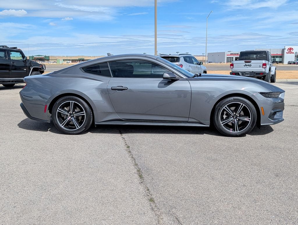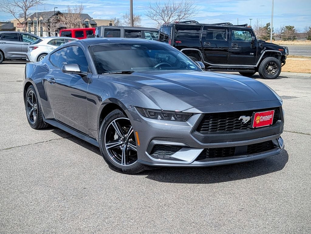 Certified. Carbonized Gray Metallic 2025 Ford Mustang EcoBoost RWD 10-Speed Automatic EcoBoost 2.3L I4 GTDi DOHC Turbocharged VCT Fremont Certified Certified, 4-Wheel Disc Brakes, ABS brakes, Air Conditioning, Alloy wheels, AM/FM Stereo, Auto High-beam Headlights, Automatic temperature control, Brake assist, Bumpers: body-color, Compass, Delay-off headlights, Driver door bin, Driver vanity mirror, Dual front impact airbags, Dual front side impact airbags, Electronic Stability Control, Emergency communication system: 911 Assist, Exterior Parking Camera Rear, Four wheel independent suspension, Front anti-roll bar, Front Bucket Seats, Front Center Armrest, Front dual zone A/C, Front reading lights, Fully automatic headlights, Illuminated entry, Internet access capable: FordPass Connect, Knee airbag, Leather Shift Knob, Low tire pressure warning, Occupant sensing airbag, Outside temperature display, Overhead airbag, Overhead console, Panic alarm, Passenger door bin, Passenger vanity mirror, Power door mirrors, Power steering, Power windows, Radio data system, Rain sensing wipers, Rear anti-roll bar, Rear Parking Sensors, Rear window defroster, Remote keyless entry, Speed control, Speed-sensing steering, Speed-Sensitive Wipers, Split folding rear seat, Sport steering wheel, Steering wheel mounted audio controls, SYNC 4, Tachometer, Telescoping steering wheel, Tilt steering wheel, Traction control, Trip computer, Variably intermittent wipers, Voltmeter, and Wheels: 18 x 8 Machined-Face Aluminum. Recent Arrival! 21/32 City/Highway MPG Certification Program Details: Fremont Certified 3 months/3,000 miles Limited Powertrain Warranty. Visit us today at Fremont Motor Companies, we are Wyoming! We're not just about cars; we're about growing people and communities through relationship-driven transportation. Reach out to see what we offer and discover the perfect vehicle for you. Note: Prices exclude additional fees such as government taxes, finance charges, a dealer documentation fee of $599, emissions testing fees, and others. Prices and details might change, so please contact us for the latest information. We deliver, inquire for details!