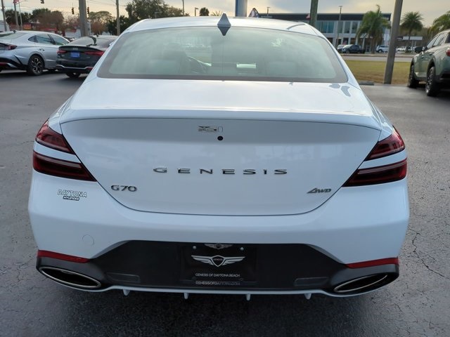 Recent Arrival! Certified. Alta White 2025 Genesis G70 2.5T AWD 8-Speed Automatic I4 20/28 City/Highway MPG.