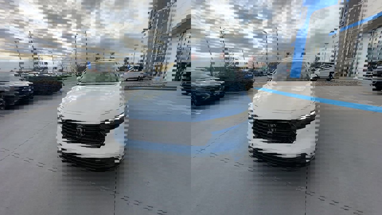 The 2025 Honda Accord Hybrid EX-L combines hybrid efficiency, advanced technology, and premium comfort in a midsize sedan designed for modern drivers. Its sleek exterior features 17-inch alloy wheels, LED headlights, chrome accents, and a bold front grille, giving the Accord Hybrid EX-L a refined and confident presence on the road. Inside, the cabin offers seating for five with leather-trimmed seats, a power-adjustable driver's seat, heated front seats, and dual-zone automatic climate control. The spacious interior provides comfort, practicality, and luxury for daily commutes and long-distance drives alike. Technology and connectivity include a 12.3-inch touchscreen display, Apple CarPlay and Android Auto, wireless phone charging, a premium audio system, navigation, multiple USB ports, and a multi-angle rearview camera. Additional features such as push-button start and smart entry enhance usability and convenience. Under the hood, the Accord Hybrid EX-L is powered by a 2.0-liter 4-cylinder hybrid powertrain paired with an e-CVT, delivering smooth acceleration, responsive handling, and excellent fuel efficiency. Standard Honda Sensing safety features help provide peace of mind on every journey. At Legends Honda, we make buying simple with our Easy, Stress-Free 3-Step Process: No Hassles, No Handoffs, No Dealer Fees. Drive home your 2025 Honda Accord Hybrid EX-L today with confidence and ease at Legends Honda.