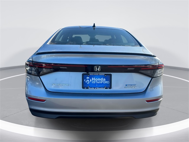 Solar Silver Metallic 2025 Honda Accord Hybrid Sport FWD eCVT 2.0L I4 DOHC 16V. Honda Certified, includes warranty, online special. Odometer is 5172 miles below market average! 46/41 City/Highway MPG. Must finance through Honda of Stamford to qualify for internet special pricing.