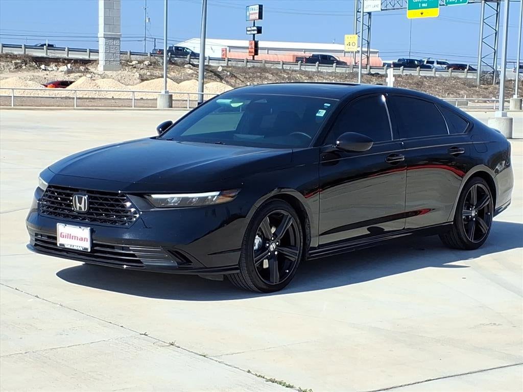 Gillman's Lifetime Engine Warranty lasts as long as you own your vehicle - free with the Gillman Pre-Owned Promise. If the vehicle isn't right for you, return it in purchase condition within 2 days or 200 miles as part of our Happy-Driving Guarantee. (Valid on vehicles under 90,000 miles and less than 7 years old). Step into sophistication with the 2025 Honda Accord Hybrid Sport-L in classic black. This advanced sedan blends power, comfort, and technology, featuring a robust 2.0L Hybrid engine and smooth 1-speed direct-drive automatic transmission for an impressive driving experience. Enjoy cutting-edge convenience with wireless Apple CarPlay and Android Auto, a 12.3-inch infotainment touchscreen, front wireless charging, and Amazon Alexa compatibility. Safety is paramount with adaptive cruise control, lane keeping assist, front automatic emergency braking, blind spot monitoring, rear cross-traffic alert, and a multi-view rear camera system. Luxurious touches include leather-trimmed upholstery, heated front seats, a power moonroof, and driver seat memory settings. The Accord Hybrid Sport-L delivers efficiency and elegance, making it the perfect choice for drivers seeking innovation, style, and peace of mind. All vehicles subject to prior sale. We are not responsible for typographical errors and may change information without notice. Photos may not depict the actual vehicle. Tax, title, and license fees not included. Dealer Discount available to all buyers. Vehicles purchased from Gillman Automotive Group include a Bring It Back Guarantee: return the vehicle in purchase condition within two days or 200 miles. New current-model-year vehicles and qualifying pre-owned vehicles (under 90,000 miles and less than 7 years old) are eligible. Guarantee is non-transferable and has no cash value. Lifetime Warranty available on select pre-owned vehicles. See dealer for details; restrictions may apply.