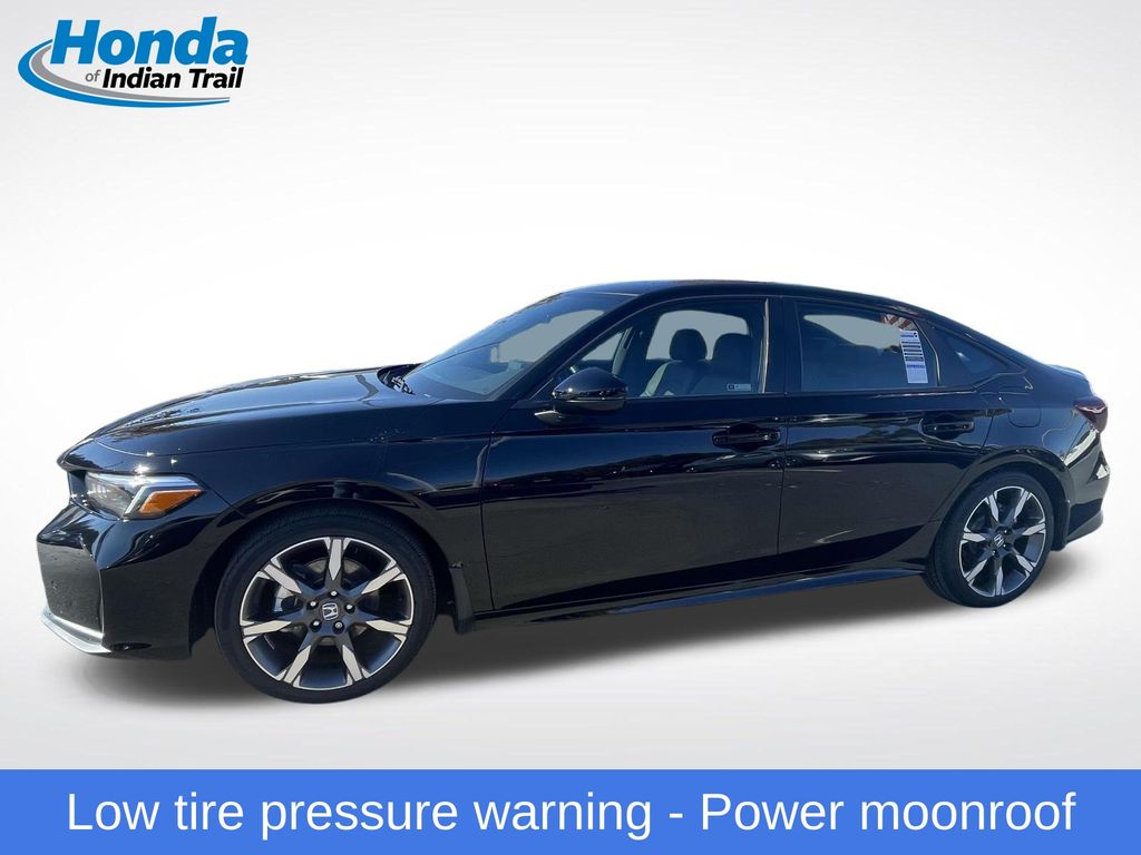 2025 Honda Civic Hybrid Sport Touring Crystal Black Pearl FWD. Odometer is 5688 miles below market average! 50/47 City/Highway MPG. Clean CARFAX. HondaTrue Certified Details: Warranty Deductible: $0, Vehicle History, Limited Warranty: 24 Month/100,000 Mile (whichever comes first) after new car warranty expires or from certified purchase date, Vehicles purchased within New Vehicle Limited Warranty period: extends New Vehicle Limited Warranty to 5 years*/60,000 miles. Honda Care Roadside Assistance for 2 year/100,000 miles (whichever occurs first). Up to two complimentary oil changes within the first year of ownership. SiriusXM 90-Day Trial. Transferable Warranty. Powertrain Limited Warranty: 84 Month/100,000 Mile (whichever comes first) from original in-service date. 182 Point Inspection. Roadside Assistance.