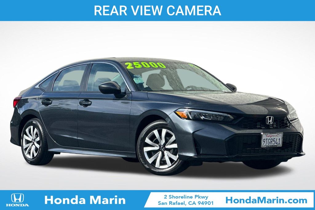 Meteorite Gray Metallic 2025 Honda Civic LX FWD CVT 2.0L I4 DOHC 16V Rear view camera, one owner, Bluetooth/handsfree, low miles, non smoker, Honda Certified, Black w/Cloth Seating Surfaces. Odometer is 6330 miles below market average! 32/41 City/Highway MPG. At Marin Honda, we’re committed to making your car buying experience as easy and enjoyable as possible. We have one of the best selections of new Hondas, used Hondas, and Certified Pre-Owned Hondas in Marin County. We also have a variety of used cars from other automakers for you to choose from as well. At our convenient location in San Rafael, we also serve customers from the nearby communities of Novato, Petaluma, Santa Rosa, San Francisco, Sonoma, Napa, Solano, Contra Costa and Richmond too. When you’re ready to experience the legendary performance of the Honda brand, visit our financing page to calculate the payments on a new car, estimate the value of your current car as a trade in, and get pre-approved for a loan. We can help refresh your credit.