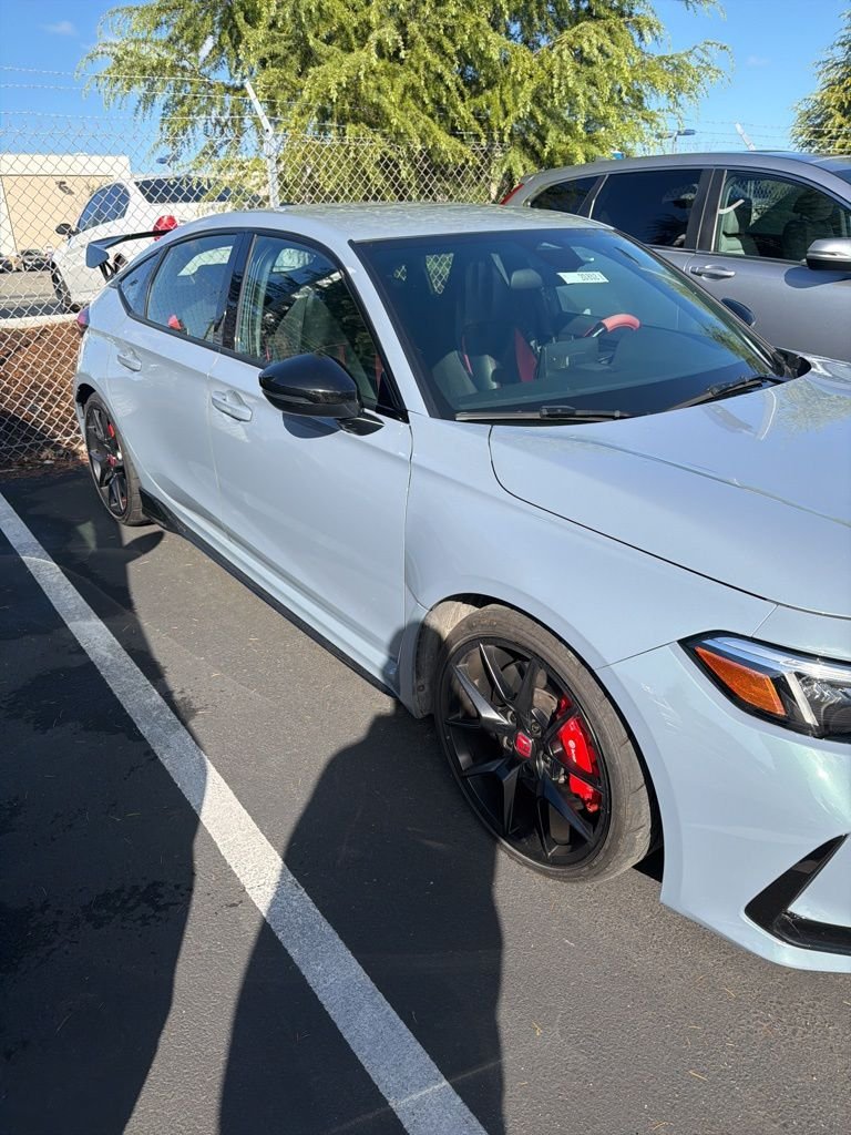 Recent Arrival! New Price! Certified. Sonic Gray Pearl 2025 Honda Civic Type R FWD 6-Speed Manual 2.0L I4 Turbocharged DOHC 16V LEV3-ULEV50 315hp. 22/28 City/Highway MPG. HondaTrue Certified Details: 182 Point Inspection, Vehicles purchased within New Vehicle Limited Warranty period: extends New Vehicle Limited Warranty to 5 years/60,000 miles. Honda Care Roadside Assistance for 2 year/100,000 miles (whichever occurs first). Up to two complimentary oil changes within the first year of ownership. SiriusXM 90-Day Trial. Warranty Deductible: $0. Powertrain Limited Warranty: 84 Month/100,000 Mile (whichever comes first) from original in-service date. Transferable Warranty. Limited Warranty: 24 Month/100,000 Mile (whichever comes first) after new car warranty expires or from certified purchase date. Roadside Assistance. Vehicle History.
