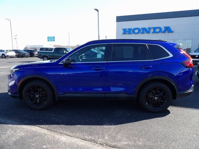 This super vehicle was recently traded in by our store here in Muncie. This Beauty has had and passed an extensive 182 Multi-Point Inspection conducted by our factory certified technicians. All necessary services have been done for the appropriate mileage interval including: Oil and filter changed, Rear differential serviced, Wiper(s) replaced, Vehicle washed/detailed. This superb vehicle comes with two sets of keys, Memory seat, Power Liftgate, and Power moonroof. 2025 Honda CR-V Hybrid Sport-L Clean CARFAX. CARFAX One-Owner. Honda Certified. Buy with confidence as each of our Pre-Owned Vehicles come equipped with Car Doc, our exclusive maintenance and membership program. The included Car Doc Program comes with 6 Complimentary Oil Changes and 6 Tire Rotations for the first TWO years of car ownership. Also, this vehicle is available to upgrade to a 3 year Car Doc along with other perks to give you peace of mind when it comes to your driving experience.