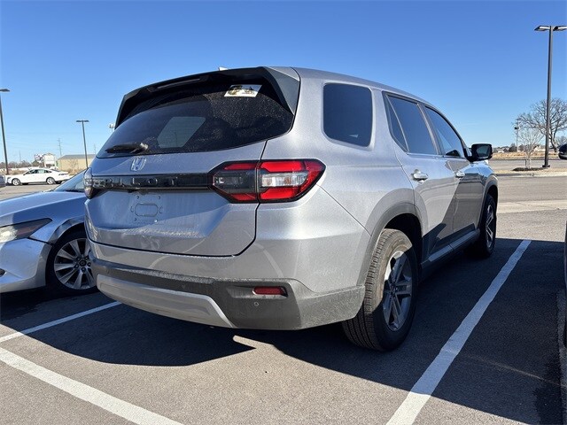 Clean CARFAX. Silver 2025 Honda Pilot EX-L FWD 10-Speed Automatic 3.5L V6 DOHC 24V. Recent Arrival! Odometer is 14312 miles below market average! 19/27 City/Highway MPG. This 2025 Honda Pilot comes equipped with 3rd row seats: split-bench, 4-Wheel Disc Brakes, 4.167 Axle Ratio, 9 Speakers, ABS brakes, Adaptive Cruise Control: Adaptive Cruise Control (ACC) with Low-Speed Follow, Air Conditioning, Alloy wheels, AM/FM radio: SiriusXM, Apple CarPlay/Android Auto, Auto High-beam Headlights, Auto-dimming Rear-View mirror, Automatic temperature control, Blind Spot Information (BSI) System warning, Brake assist, Bumpers: body-color, Delay-off headlights, Driver door bin, Driver vanity mirror, Dual front impact airbags, Dual front side impact airbags, Electronic Stability Control, Emergency communication system: HondaLink Assist, Exterior Parking Camera Rear, Four wheel independent suspension, Front anti-roll bar, Front Bucket Seats, Front Center Armrest, Front dual zone A/C, Front fog lights, Front reading lights, Fully automatic headlights, Garage door transmitter: HomeLink, Heated door mirrors, Heated Front Bucket Seats, Heated front seats, Illuminated entry, Knee airbag, Lane departure: Lane Keeping Assist System (LKAS) active, Leather Seat Trim, Low tire pressure warning, Memory seat, Occupant sensing airbag, Outside temperature display, Overhead airbag, Overhead console, Panic alarm, Passenger door bin, Passenger vanity mirror, Power door mirrors, Power driver seat, Power Liftgate, Power passenger seat, Power steering, Power windows, Radio data system, Radio: 245-Watt Audio System, Rear air conditioning, Rear anti-roll bar, Rear reading lights, Rear seat center armrest, Rear window defroster, Rear window wiper, Reclining 3rd row seat, Remote keyless entry, Security system, SiriusXM, Speed control, Speed-sensing steering, Speed-Sensitive Wipers, Split folding rear seat, Spoiler, Steering wheel mounted audio controls, Tachometer, Telescoping steering wheel, Tilt steering wheel, Traction control, Trip computer, Turn signal indicator mirrors, Variably intermittent wipers, and Wheels: 18" Pewter Gray Machined Face.
