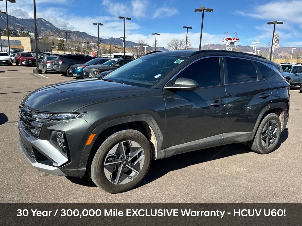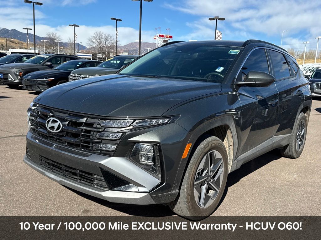 Recent Arrival! Always over 1,000 Pre-Owned in stock! No Payments for 90 days! 30 Year / 300,000 Mile Exclusive Warranty - HCUV U60!, 10 Year / 100,000 Mile Exclusive Warranty - HCUV O60!, 1.6L I4 DGI Hybrid Turbocharged DOHC 16V LEV3-SULEV30. CARFAX One-Owner. Clean CARFAX. Certified. Amazon Gray 2025 Hyundai Tucson Plug-In Hybrid SEL AWD 6-Speed Automatic 1.6L I4 DGI Hybrid Turbocharged DOHC 16V LEV3-SULEV30 Hyundai Certified Used Vehicles Details: Warranty Deductible: $50. Includes 10-year/Unlimited Mileage Roadside Assistance with Rental Car and Trip Interruption Reimbursement; Please See Dealers for Specific Vehicle Eligibility Requirements. 10-Year/100,000 Mile Hybrid/EV Battery Warranty. 3-Months SiriusXM Trial Subscription. Complimentary 1 Year (Connected Care & Remote Pkgs). 173+ Point Inspection. Limited Warranty: 60 Month/60,000 Mile (whichever comes first) from original in-service date. Vehicle History. Roadside Assistance. Powertrain Limited Warranty: 120 Month/100,000 Mile (whichever comes first) from original in-service date.