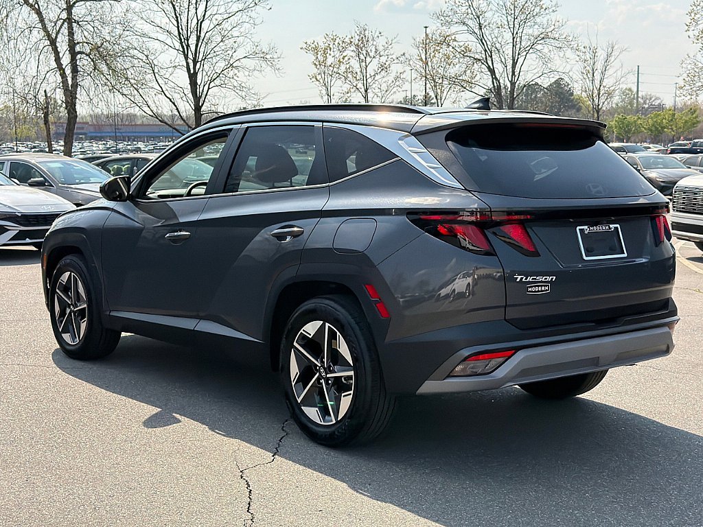The 2025 Hyundai Tucson SEL is a well-balanced compact SUV that offers a blend of efficiency, comfort, and advanced technology, powered by a 2.5L 4-cylinder engine producing around 187 horsepower paired with an 8-speed automatic transmission, with front-wheel drive standard and available HTRAC all-wheel drive for added versatility. It delivers solid fuel economy of up to approximately 28 MPG combined and provides a smooth, confident ride for daily driving. Inside, the Tucson SEL features a spacious and modern cabin with cloth seating, an 8-way power driver’s seat, heated front seats, dual-zone automatic climate control, and a large 12.3-inch touchscreen infotainment system with wireless Apple CarPlay and Android Auto. Convenience highlights include a hands-free smart liftgate, Hyundai Digital Key, push-button start, and roof rails, while safety is enhanced with Hyundai SmartSense technologies such as forward collision avoidance assist, lane following assist, smart cruise control with stop-and-go, and high beam assist. With its bold design, 18-inch alloy wheels, and practical cargo space, the 2025 Hyundai Tucson SEL is a versatile and tech-forward SUV ideal for everyday use.