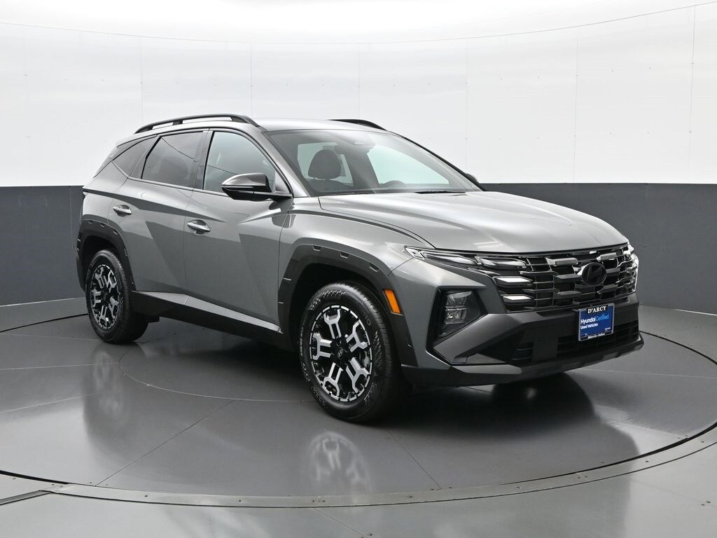 Clean CARFAX. One owner local trade!, Low miles!, Great vehicle history!, Bought here serviced here!, Hyundai certified!, Fully serviced and ready to go!. Certified. Recent Arrival! Hampton Gray 2025 Hyundai Tucson XRT AWD 8-Speed Automatic with SHIFTRONIC 2.5L I4 DGI DOHC 16V LEV3-SULEV30 187hp. Discover the D'Arcy Difference! We care - we are here and we are ready to help! Stop by www.darcyhyundai.com today to see up to date information, including showroom and service hours, and how to make an appointment or schedule delivery. D'Arcy Motors has been serving Joliet and its surrounding communities for over 25 years. Our business philosophy, which is to sell cars one car at a time and to make the guest the most important part of the process, has remained the same since 1991. Contact us today to experience the D'Arcy Difference! Pulse Safer Braking Technology for $399 added to all New and CPO - The rear-end collision deterrent that rapidly pulses your third brake light four times before going solid when you press the brake pedal. This feature enhances safety by helping alert trailing drivers.