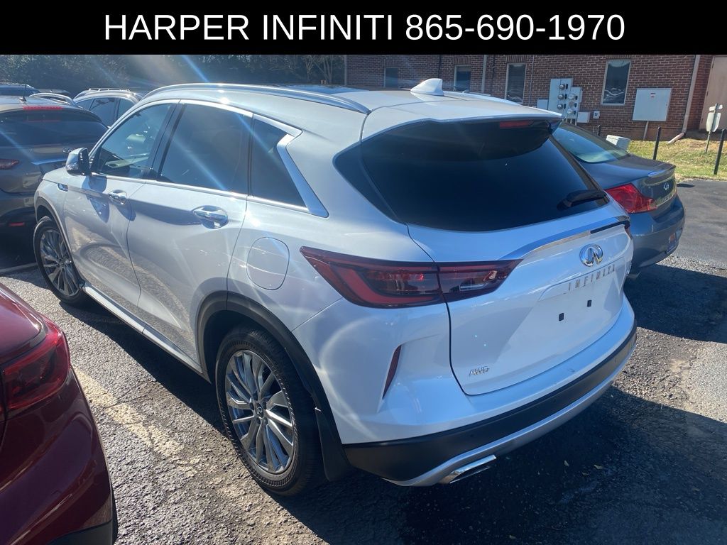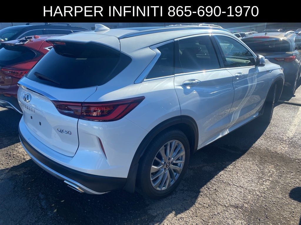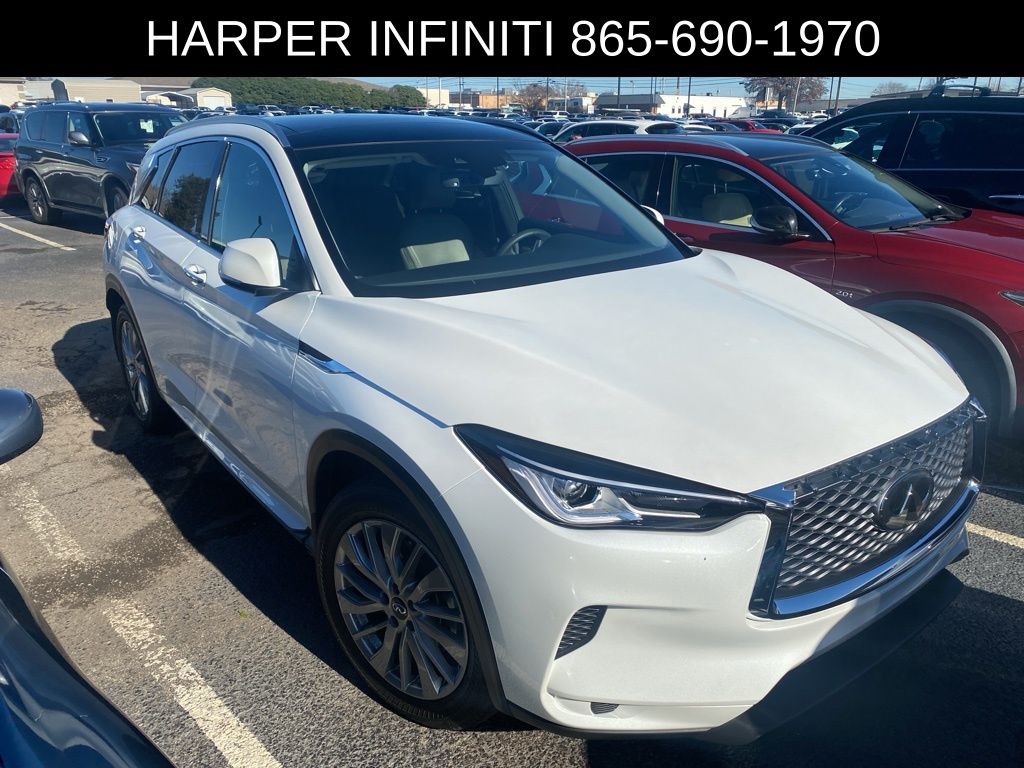 Recent Arrival! Carfax One-Owner. Clean Carfax. Certified. 2025 Infiniti QX50 LUXE in Radiant White. Odometer is 4494 miles below market average! 22/28 City/Highway MPG. Harper INFINITI is excited to offer this terrific-looking 2025 Infiniti QX50 in Radiant White. Harper INFINITI believes in the quality of the vehicles we sell so well that we provide an unlimited miles, powertrain warranty on every new and qualifying pre-owned vehicle it sells! This warranty is good at any ASE certified shop in the 48 continental United States! Check out all these great options. INFINITI Certified Pre-Owned Details: 1-Year Prepaid Service Visit Included. 6 Year/75,000 Mile Warranty for Vehicles With Less Than 15,000 Miles at Time of Certification. 6 Year/Unlimited Mile Warranty for Vehicles with 15,001-60,000 Miles at Time of Certification. INFINITI ONLY Models Qualify. Vehicle History. Transferable Warranty. Warranty Deductible: $0. Limited Warranty: 72 Month/Unlimited Mile from original in-service date. Roadside Assistance. 167 Point Inspection.
