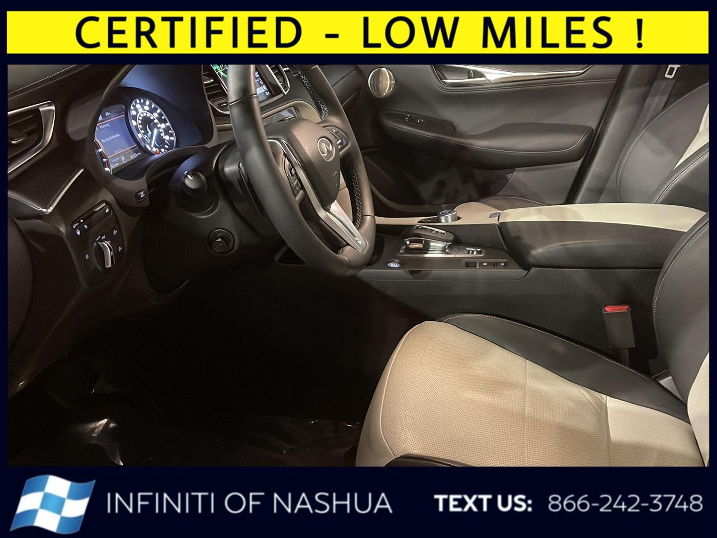 This Certified 2025 INFINITI QX55 ESSENTIAL, has a Black Obsidian exterior and a Stone interior color. 11,932 miles. Stock Number N5632SL. You can connect with us by calling 844-278-1847. No Accidents! One Owner! At INFINITI of Nashua, we're here to Serve you! Our staff is 100% dedicated to customer satisfaction and we understand that you need clear, transparent information throughout the car buying process. With our live market pricing philosophy, we offer the right cars at the right price, and the transparency to back it up! With INFINITI of Nashua, you get more than a great vehicle. You get a dealership partner that always puts you first! Don't hesitate...pick up the phone now and call us at 844-278-1847 speak with one of our friendly sales team members today!