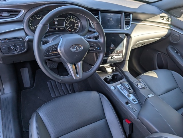 CARFAX One-Owner. Clean CARFAX. Certified. 2025 INFINITI QX55 LUXE AWD This terrific 2025 INFINITI QX55 LUXE in Slate Gray features Cargo Package (Black Film Rear Bumper Protector, Cargo Net, and Reversible Cargo Mat), INFINITI Certified Pre-Owned Certified, Black Splash Guards (Set of 4), Carpeted Floor Mats, 4-Wheel Disc Brakes, 6 Speakers, ABS brakes, Air Conditioning, Alloy wheels, AM/FM radio: SiriusXM, Auto High-beam Headlights, Auto-dimming Rear-View mirror, Automatic temperature control, Brake assist, Dual front impact airbags, Dual front impact zone car alarm, etc. Shop 100% online and we will come to you! Black Film Rear Bumper Protector, Black Splash Guards (Set of 4), Cargo Net, Cargo Package, Carpeted Floor Mats, Reversible Cargo Mat. CVT I4.