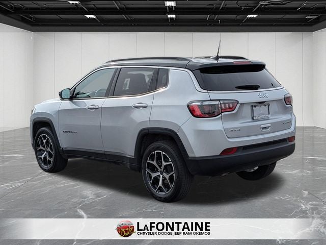 Certified. Silver Zynith Metallic Clearcoat 2025 Jeep Compass Limited 4WD 8-Speed Automatic 2.0L I4 DOHC One Owner, Clean Carfax, Apple CarPlay/Android Auto, Adaptive Cruise Control with Stop and Go, Active Lane–Management System, Full–Speed Forward–Collision Warning Plus, ParkSense Rear Park–Assist with Stop, Blind–Spot and Cross–Path Detection, Remote Start, 4WD, Heated front seats, ParkView Rear Back-Up Camera, Quick Order Package 29G, Radio: Uconnect 5 w/10.1 Display, Rain sensing wipers, Remote keyless entry. Recent Arrival! 24/32 City/Highway MPG FCA US LLC Certified Pre-Owned Details: Vehicles Up to 75,000 Miles and/or 5 Model Years. 24-Hour Towing & Roadside Assistance, Car Rental Allowance, CARFAX Vehicle History Report and an Introductory 3-month Subscription to SiriusXM Satellite Radio & Certified Warranty Upgrades Roadside Assistance Vehicle History 125 Point Inspection Warranty Deductible: $100 Transferable Warranty Limited Warranty: 3 Month/3,000 Mile (whichever comes first) after new car warranty expires or from certified purchase date Powertrain Limited Warranty: 84 Month/100,000 Mile (whichever comes first) from original in-service date.