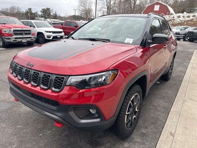 Experience the Thrill of the Trails with this Exceptional 2025 Jeep Compass Trailhawk. Elevate your off-road adventures with this meticulously maintained 2025 Jeep Compass Trailhawk. With its striking Red exterior, this Compass Trailhawk is more than just a head-turner – it's a true performance-driven SUV built to conquer any terrain. Powered by a robust 2.0L I4 DOHC engine paired with an 8-Speed Automatic transmission and 4WD, this Compass Trailhawk delivers an exceptional blend of capability and efficiency, boasting an impressive 24 city/32 highway MPG. The Trailhawk Convenience Group and Sun & Sound Group elevate this Compass to new heights, offering a premium experience. Jeep's commitment to quality and safety is evident in this Certified Pre-Owned Compass Trailhawk, which has undergone a rigorous 125-point inspection and comes with a transferable warranty, roadside assistance and a CARFAX vehicle history report. You can drive with confidence, knowing this SUV is ready to tackle any adventure.
