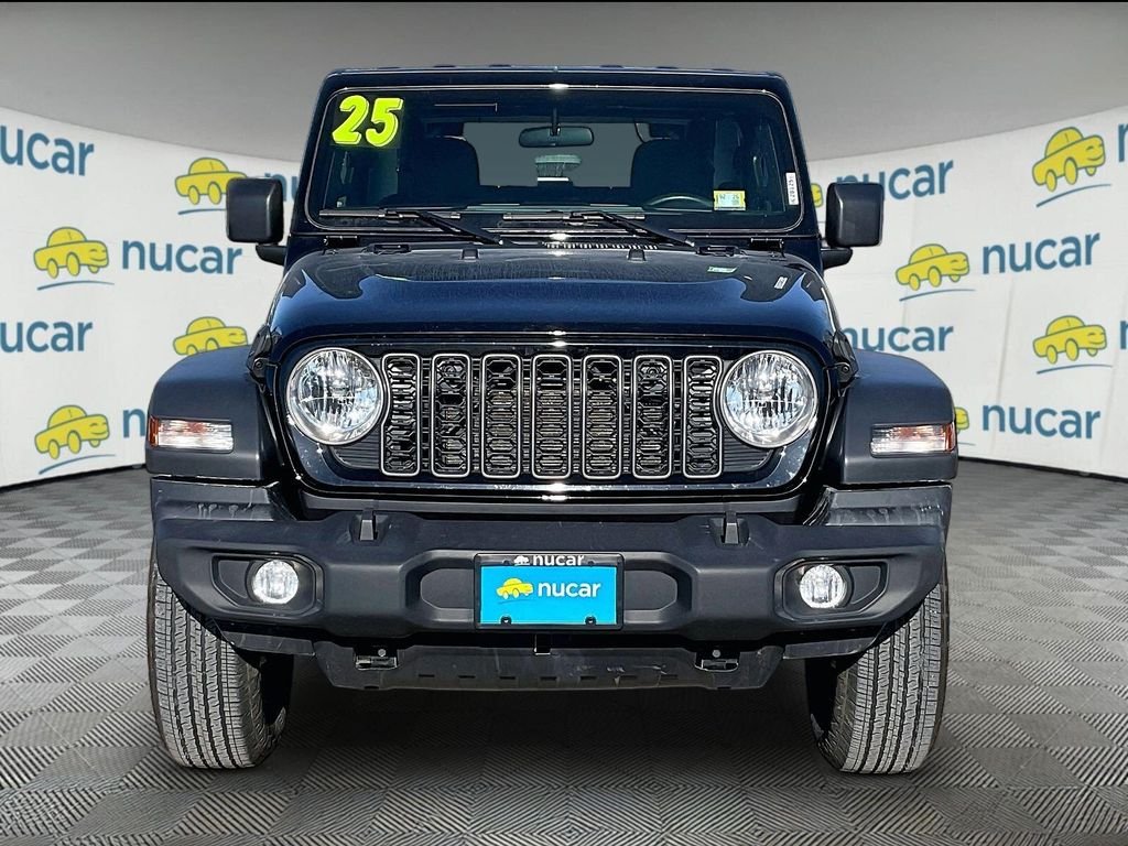 Nucar Certified Pre-Owned vehicle! Clean Carfax report/no accidents reported, remainder of factory warranty, Bluetooth/hands free smartphone integration, back up camera, extra clean, fully detailed and serviced, 2025 Jeep Wrangler, 4x4, Apple CarPlay & Google Android Auto, Wrangler Sport, 2D Sport Utility, 2.0L I4 DOHC, 8-Speed Automatic, 4WD, Black Clearcoat, Black w/Cloth Low-Back Bucket Seats, AM/FM radio: SiriusXM, Apple CarPlay/Android Auto, Cloth Low-Back Bucket Seats, ParkView Rear Back-Up Camera, Quick Order Package 22B Sport, Radio: Uconnect 5 w/12.3" Display, Remote keyless entry, Wheels: 17" x 7.5" Black Steel Styled. 2025 Jeep Wrangler Sport 4WD. Black Clearcoat. Stop by Nucar Automall of Tilton, located at 40 E. Main St in Tilton, NH. We have the best selection of quality pre-owned vehicles in all of central NH. Need financing? We have financing available for all credit types. Our goal is 100% credit approval. Call 603-286-3141 today to schedule your no-obligation test drive. Don't forget to ask about our free home delivery service!