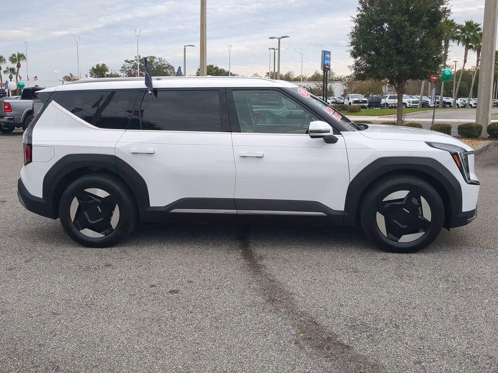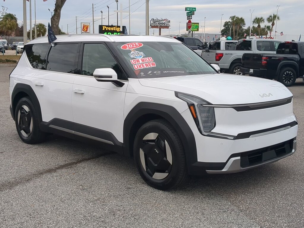 Step into the future of driving today! This cutting-edge 2025 Kia EV9 Wind has just arrived in Ocala with only 855 miles. It is practically brand new, offering the incredible 3-row electric experience you’ve been reading about for thousands less than a "new" sticker price. The "Wind" AWD Sweet Spot The Wind trim is the smart buyer's choice. It unlocks the powerful Dual-Motor All-Wheel Drive system, boosting output to a massive 379 horsepower and 443 lb-ft of torque. It launches this family SUV from 0-60 in just 5 seconds, all while offering superior traction in Florida rain or sandy trails. Next-Gen Tech & Range Say goodbye to gas stations forever. The EV9 Wind features a massive 99.8 kWh battery delivering an EPA-estimated 280 miles of range. Plus, thanks to its 800V architecture, you can charge from 10% to 80% in approximately 24 minutes at a DC Fast Charger. Inside, the cabin looks like a spaceship: Dual 12.3-inch Panoramic Screens merge to form a massive digital dashboard. Dual Sunroofs (Front and Rear) flood the cabin with light. Heated & Ventilated Front Seats and a Heated Steering Wheel. 7-Passenger Seating with a spacious second-row bench—perfect for larger families. Standard Safety Shield Drive with the most advanced safety tech Kia offers. The EV9 includes over 20 standard collision-avoidance and driver-assist features, including Blind-Spot Collision-Avoidance Assist, Highway Driving Assist 2, and Forward Collision-Avoidance Assist. With only 855 miles, this vehicle is virtually indistinguishable from new. Its a rare opportunity to skip the waitlist and the initial depreciation, getting you into the World Car of the Year winner immediately. Don't miss this chance to own the electric SUV that is changing the game.