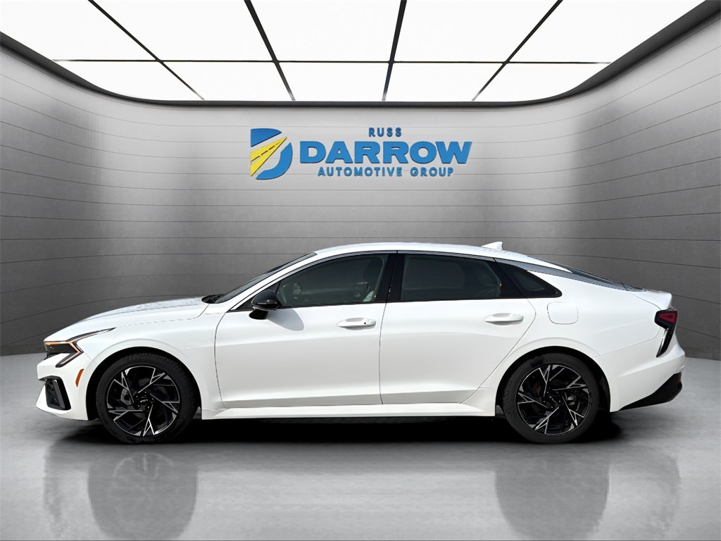 2025 Kia K5 GT-Line Snow White Pearl I4 AWD. Manufacturer certified, non-smoker, Bluetooth connection for mobile phone, Carfax 1-owner, Carfax accident free, good maintenance history, GPS navigation system, power sliding sunroof/moonroof, premium heated leather upholstery, push button start, rear back-up camera with display, remote vehicle start system, very low miles, Android Auto & Apple CarPlay, heated front seats, lane keep assist, rear parking assist, wireless charging pad, heated steering wheel, navigation system. Certified. Kia Certified Pre-Owned Details: Roadside Assistance, 165 Point Inspection, Powertrain Limited Warranty, Limited Warranty, Vehicle History, Transferable Warranty. Clean Carfax. Carfax one-owner. Odometer is 601 miles below market average! Includes exclusive membership status in the Russ Darrow Rewards Program.