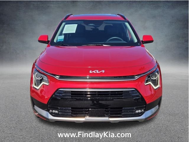 Welcome to Findlay Kia on Sahara Ave in Las Vegas. All of our vehicles are hand picked and inspected for your piece of mind. This Kia Niro is equipped with the following options: Kia Certified Pre-Owned Certified, 1.6L I4 DGI Hybrid DOHC 16V LEV3-SULEV30, 4-Wheel Disc Brakes, 6 Speakers, ABS brakes, Air Conditioning, Alloy wheels, AM/FM radio: SiriusXM, Apple CarPlay & Android Auto, Auto High-beam Headlights, Auto-Dimming Mirror w/HomeLink (Wired), Automatic temperature control, Brake assist, Bumpers: body-color, Cloth & Vegan Leather-Trimmed Seats, Delay-off headlights, Driver door bin, Driver vanity mirror, Dual front impact airbags, Dual front side impact airbags, Electronic Stability Control, Emergency communication system: Kia Connect (includes 1 year free trial), Exterior Parking Camera Rear, Four wheel independent suspension, Front anti-roll bar, Front Bucket Seats, Front Center Armrest, Front dual zone A/C, Front fog lights, Front reading lights, Fully automatic headlights, Heated door mirrors, Heated Front Bucket Seats (3-Steps), Heated front seats, Illuminated entry, Interior Light Kit, Knee airbag, Leather Shift Knob, Low tire pressure warning, Navigation System, Occupant sensing airbag, Outside temperature display, Overhead airbag, Overhead console, Panic alarm, Passenger door bin, Passenger vanity mirror, Power door mirrors, Power driver seat, Power moonroof, Power steering, Power windows, Radio: AM/FM/HD/SiriusXM, Rain sensing wipers, Rear anti-roll bar, Rear seat center armrest, Rear window defroster, Rear window wiper, Remote keyless entry, Security system, Speed control, Speed-sensing steering, Split folding rear seat, Spoiler, Steering wheel mounted audio controls, Telescoping steering wheel, Tilt steering wheel, Traction control, Trip computer, Turn signal indicator mirrors, Variably intermittent wipers, Wheel Locks, and Wheels: 7.5J x 18" Machine Finished Alloy. Certified. Runway Red 2025 Kia Niro EX Touring FWD 6-Speed Dual Clutch 1.6L I4 DGI Hybrid DOHC 16V LEV3-SULEV30. Odometer is 1608 miles below market average! 53/45 City/Highway MPG.